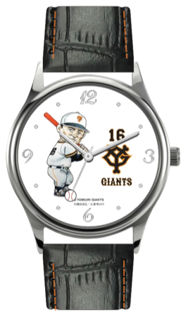 川上哲治さんのイラストは「巨人の星」の著者である川崎のぼる氏によるイラストと巨人軍のロゴを使用(読売巨人軍ロゴ使用許可取得済み)。革バンドにはGIANTSカラーのオレンジステッチでアクセントをつけます。また、秒針にボールをデザインすることで、赤バットでボールを打ってるイメージのデザインにしました。ムーブメントは日本製で、裏面には、先着100本に限りナンバリングを施す予定です。