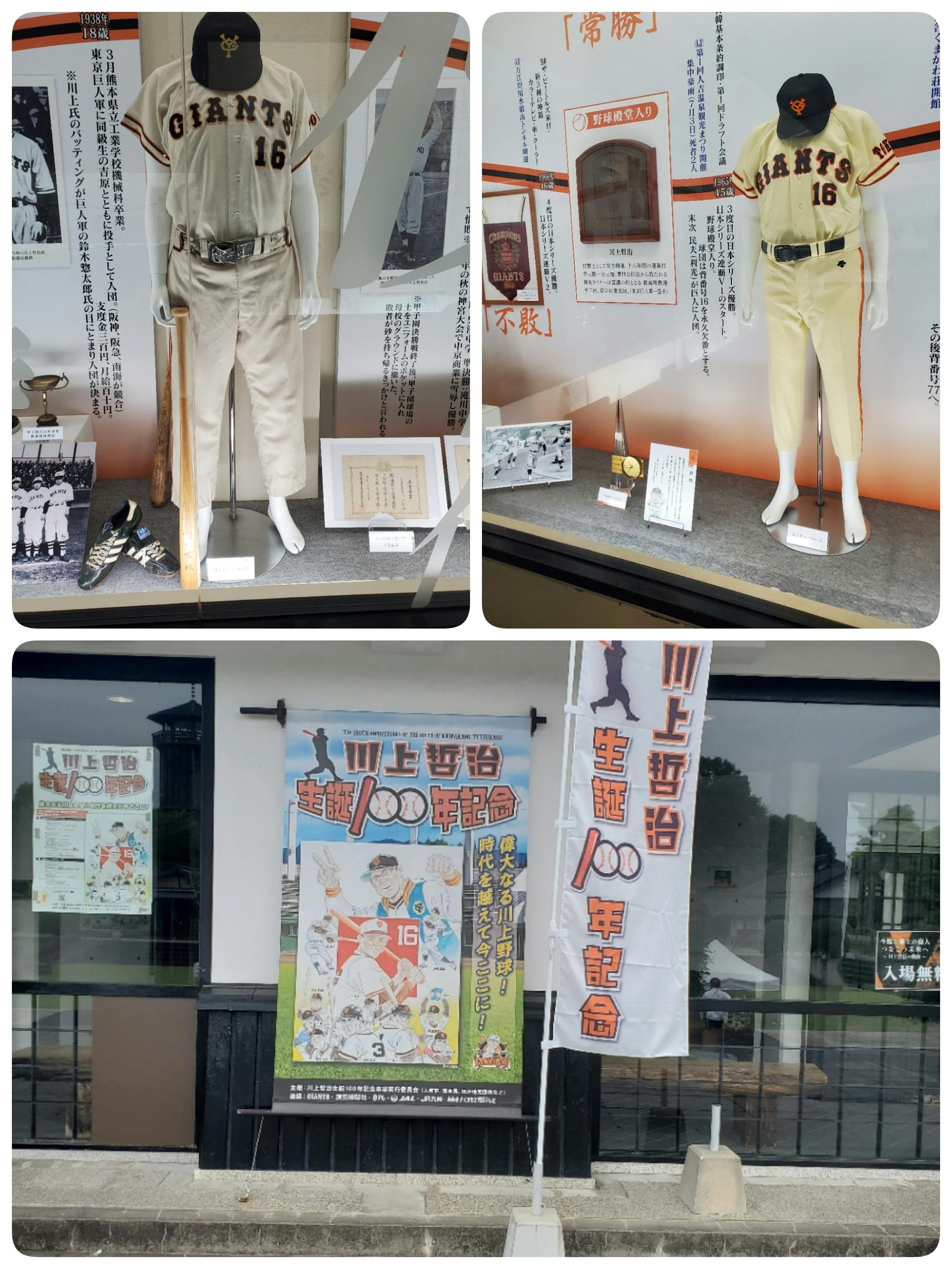 2020/06/15 19:15「川上哲治生誕100周年記念展」を人吉の道の駅である石野公園に見に行きました 。なかなか見ることのできない、本物の赤バットや川上さんの現役時代のユニフォームなど展示してありました。中でも川上語録にはとても真剣に見入ってしまい時間がたつのも忘れてしまうほど。。。「川上哲治生誕100周年記念展」は見ごたえありですね!館内では、撮影可でしたのでいくつか画像アップいたします。6月は新型コロナウイルス感染予防対策で、土日のみの開館です。8/31までに行かれたかたには抽選で赤バット(実寸)のレプリカが当たるみたい!!ワクワクです!※クラウドファンディングのチラシも主催者に許可を頂き、置くことができました。ありがたいです。ぜひ、応援よろしくお願いいたします。 もっと見る
