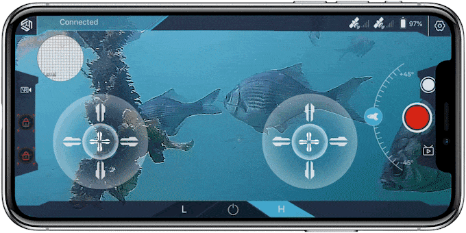 水中ドローンはその名の通り、水中のドローン!空を飛ぶドローンのように、水中を自由自在に動き回って、カメラからの映像を手元で見ることができる、言わば水中の新しいカメラです!