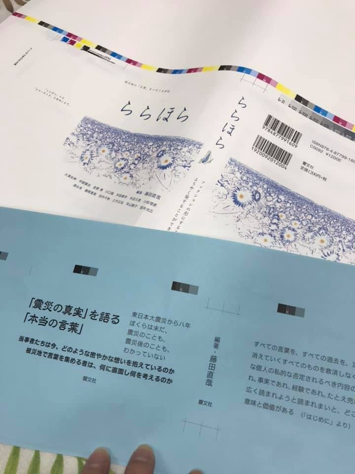 2019/04/21 10:13お世話になっております。『ららほら』、間もなく完成いたします。現在印刷所さんで刷っていただいている最中です、4月26日に手元に届く予定です。そこから順次発送させていただきます。手作業なので、数日かかる可能性がありますが、ご容赦いただければと思います。皆様の暖かいご支援のおかげで完成できたことを、心より嬉しく思っております。こんなにたくさんの方にご支援していただけるというのは、ちょっと感動するというか、胸に来る部分があります。皆様のご期待に添えた内容になっているのか、刊行直前の緊張感もありますが、ぜひお読みいただけたら嬉しいなと思っております。これが、被災地で暮らす人々や、震災後を生きる人たちのために、なんらかの役に立つ仕事であってくれたらと、心より願っております。藤田直哉 もっと見る