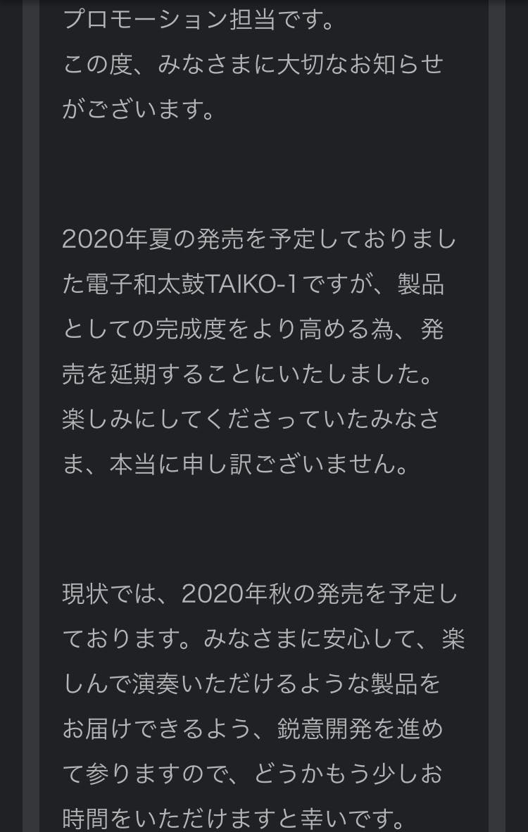 電子和太鼓TAIKO-1が発売延期