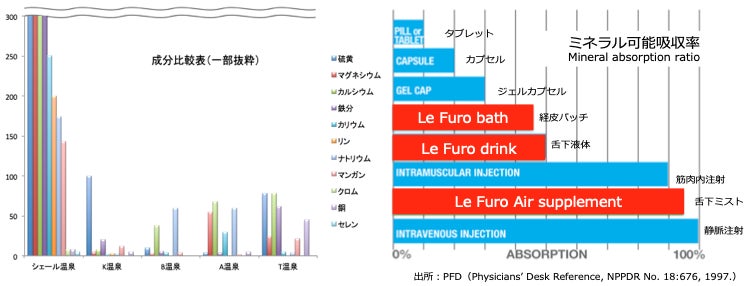 シェール温泉技術により成分も含有量もブースト化 / ミネラルはミスト状にすると吸収率がUP