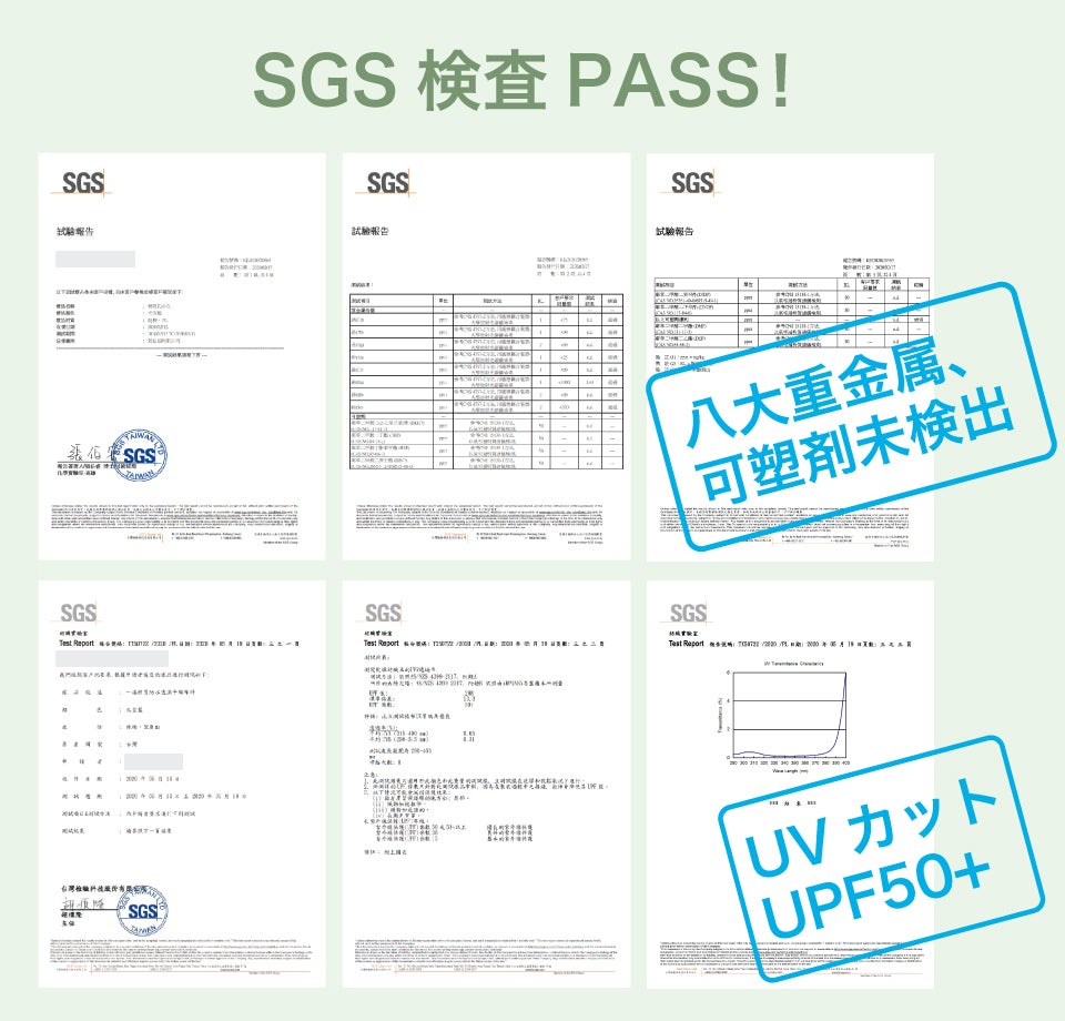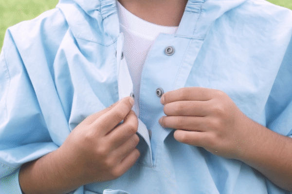 従来のレインコートの主成分であるナイロンとPVCの代わりに、天然の綿と無毒無臭なPUを使用。可塑剤と重金属を含みません。安全で、着心地の爽快なレインコートです。プラスチック独特の鼻を刺す臭いもありません。SGS検査合格済です。