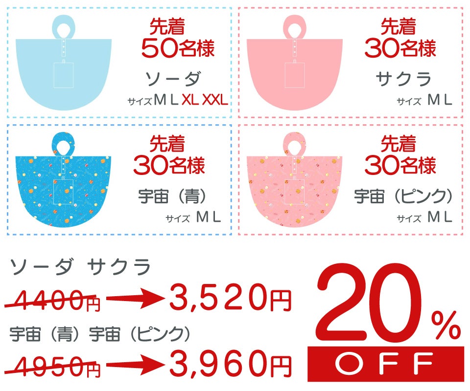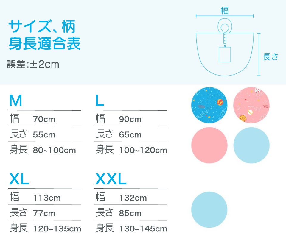 M、L、XL、XXLの四つサイズをご用意しました。好きな柄と色をお選びください。(色:宇宙(青)、宇宙(ピンク)、ソーダ、 サクラ