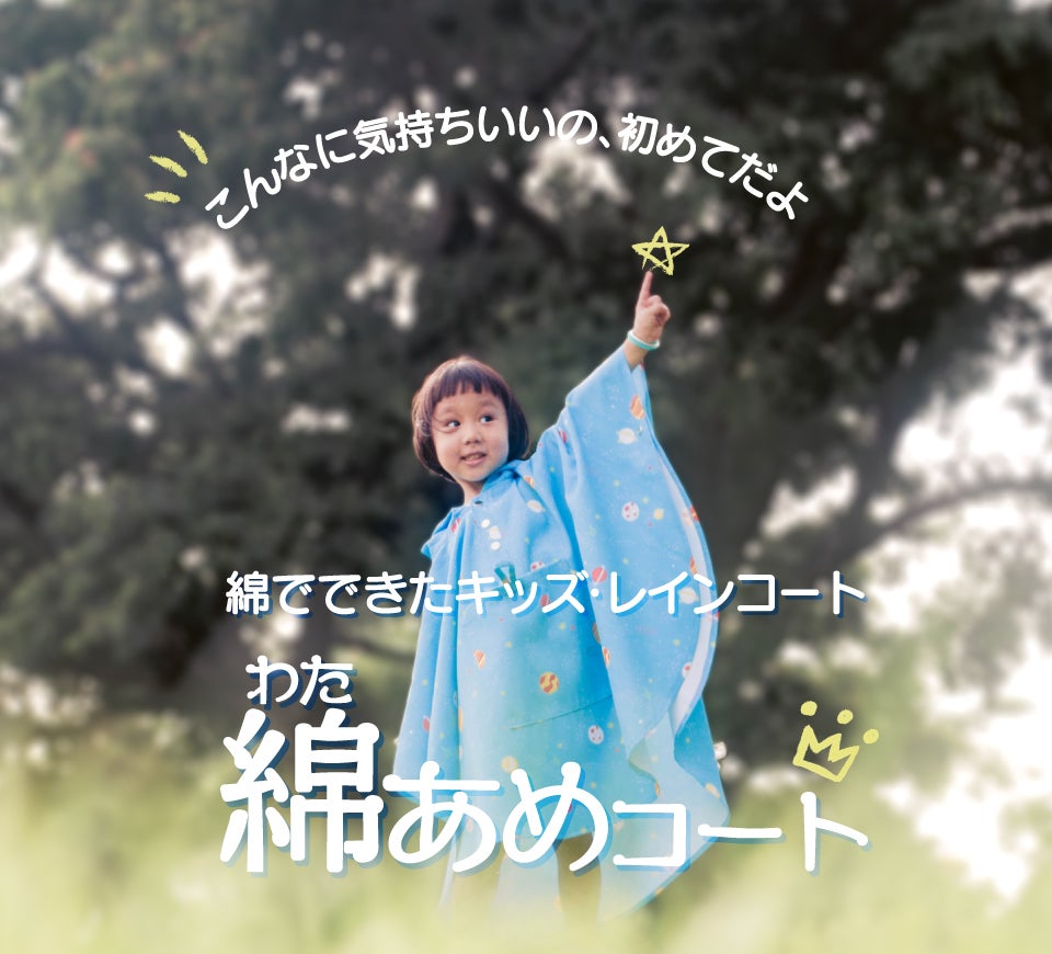 Water Billyは「子供の遊び心」を詰めた個性的な雨具・雑貨を皆様にお届するという願いを持って今年、誕生したブランドです。面白ろグッズの水鉄砲傘「ウォーターガンブレラ」に続き、本商品が二つ目の商品となります。本商品は、こどもが雨の日でも楽しくすごせるように開発された商品で、同時にエコで世の中にも貢献していける素晴らしい商品だと思います。本商品は開発者である台湾人のJamesさんのご協力のもと、日本ではWATER BILLYのブランド名で販売させていただくことになりました。そして、子供が本商品を着ながら遊ぶ姿のあまりの軽快さから着想を得、さらに主原材料であるコットン(綿)とレイン(雨:あめ)コートの言葉から「綿あめコート」という軽やかで楽しい名前が生まれてきました。