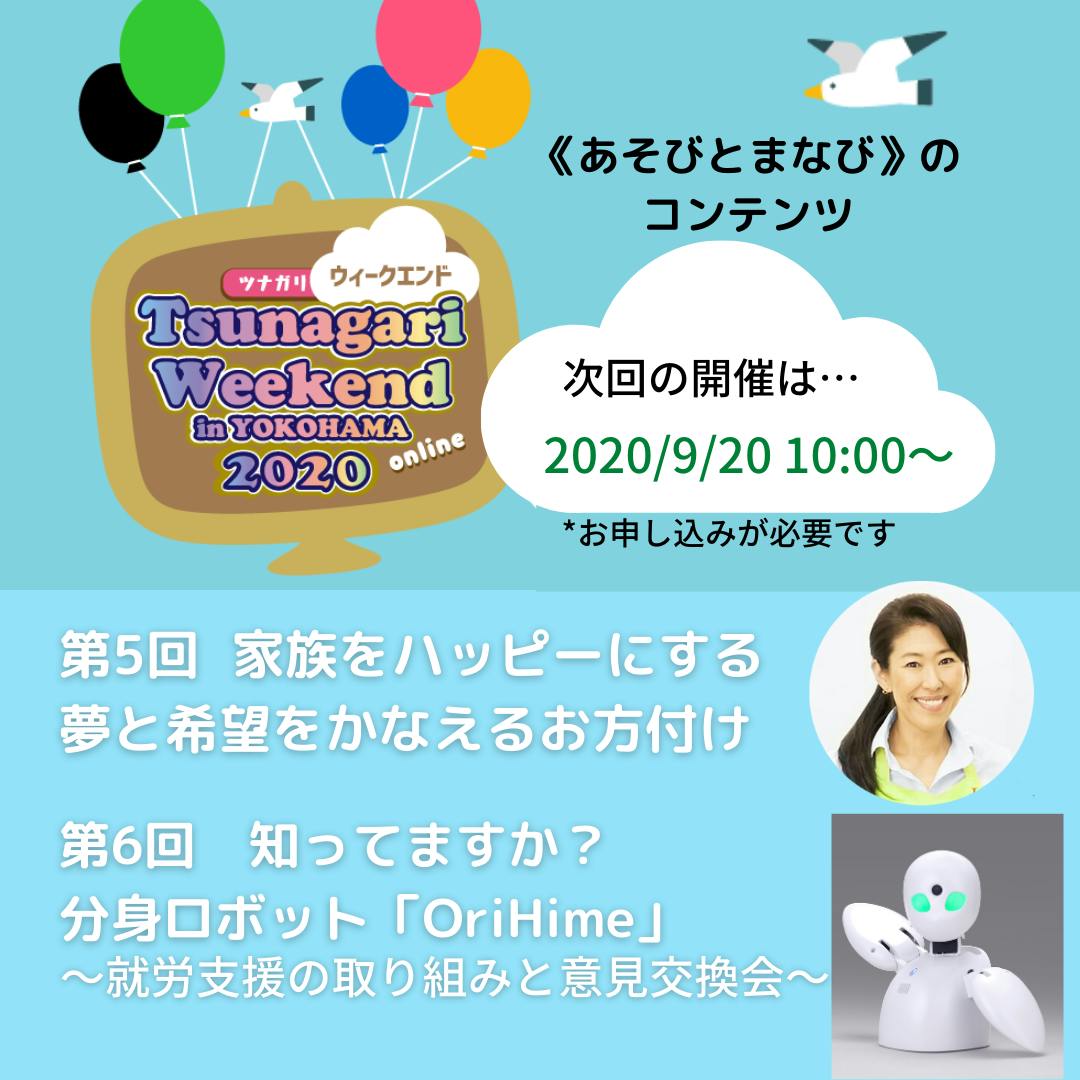 2020/09/17 16:51日頃よりヨコハマプロジェクトの活動をご支援いただきありがとうございます。ヨコハマプロジェクトでは、ご支援いただいた『ダウン症のあるヨコハマのくらし』のような「情報伝達事業」の他に、あらゆる人々が一緒に集い、活動することでお互いを知り相手の存在や能力を認め合えるような機会ーー「ふれあい・交流事業」 としてウォーキングイベント『ツナガリウォーク』を開催してきました。今年は、あいにくのコロナウイルス感染症拡大により、リアルイベントとしてではなくオンラインで繋がれる場として「ツナガリウイークエンド」という名称で無料オンラインイベントを開催することにしました。(海外同時トークイベントのみ有料)ツナガリウイークエンドは、9月の毎週日曜日に《まなびとあそびのコンテンツ》として様々なジャンルのオンラインワークショップ・トークイベントを開催しています。今度の日曜日、9月20日の演目は10:00~【家族をハッピーにする 夢と希望をかなえるお片付け♪】 幸せ住空間セラピスト 古堅純子先生お申し込みは https://tw2020online-05-okatazuke.peatix.com/11:00~【 知ってますか?分身ロボット「OriHime」 ~就労支援の取り組みと意見交換会~】 神奈川県福祉子どもみらい局共生社会推進課お申し込みは https://tw2020online-06-orihime.peatix.com/を開催します。特に11:00から開催の分身ロボット「OriHime(オリヒメ)」を使った就労支援の取り組みに関しては、障がい者の就労を取り巻く環境を自治体主導で変革する画期的な取り組みかと思われます。Zooomウェビナータイプでの開催ですので、どなたでもご覧になれます。障害者の就労についてや、神奈川県の取組み、また、最新のテクノロジーを使った社会変革の話など、ご興味のある方がありましたらぜひご視聴くださいませ。 《 概 略 》”就労支援” ってよく聞くけど実際どんなことをしているか知りたい!! そんな疑問をお持ちの方にお勧めの講座です。前半は分身ロボット「OriHime」(オリヒメ) を使った神奈川県の就労支援を紹介します。後半は「OriHime」 の産みの親である株式会社オリイ研究所をゲストに迎え、 神奈川県福祉こどもみらい局共生社会推進課、「OriHime」 の利用者が就労支援の実例を交えつつ共生社会の実現にむけた意見 交換会(パネルディスカッション)を行います。家にいながらロボットを使って働く時代はすぐそこに! 当日は本物の「OriHime」 も登場予定ですのでお見逃しなく!【ご注意】◎《まなびとあそび》のコンテンツは、ビデオ会議システム「ZOOM」を使用しての開催となります。予めZoomアプリのダウンロードが必要になります。◎本コンテンツの視聴者はビデオオフ・音声オフでの参加になります。質問などはQ&Aチャット機能を使って受け付ける予定です。◎《まなびとあそび》のコンテンツは、一部を除きYouTube Liveでも配信いたします。☆オンライン会議システムZOOMについて・開催日までに参加用Zoom IDとパスワードをご連絡します。当日はお時間になりましたら参加用Zoom IDよりご参加ください。・イベントの開始10分前より接続できるようになりますので、音声確認をお願いいたします。・インターネットの不具合、音声がうまく聞こえない等当日にトラブルが発生した場合、その場での個別サポートができませんこと、ご了承ください。・Zoomアプリのダウンロードは以下のリンクから行ってください。https://zoom.us/download#client_4meeting/PCで視聴⇒「ミーティング用Zoomクライアント」スマホで視聴 ⇒「zoomモバイルアプリ」※定員について:参加申込人数が定員に達した場合、開催日前に募集を締め切る場合があります※参加希望者が本サイトから登録情報を送信した時点で、 ヨコハマプロジェクトは参加希望者が以下の全ての条項に同意した ものとみなします。・コンテンツの録画・ヨコハマプロジェクトのホームページ・各種SNS・出版物・YOUTUBE等の動画配信サイトへの掲載 もっと見る
