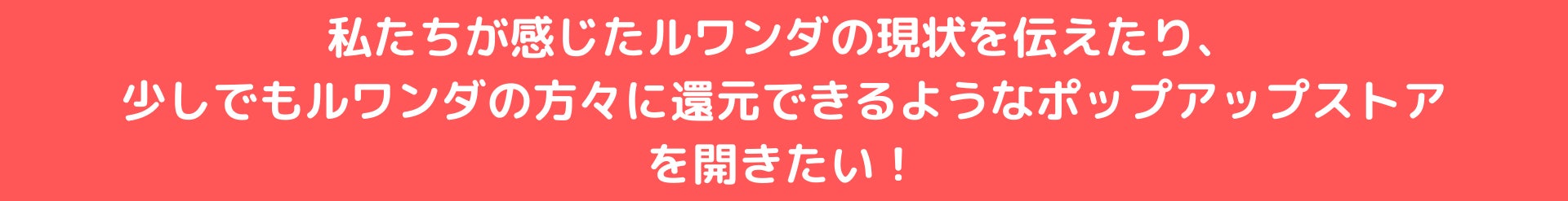 そこで私たちは、ルワンダのことをより知っていただくことができる、かつ、実際に商品を買っていただくことができるポップアップストアを東京にオープンすることをセカンドゴールとして設定します!