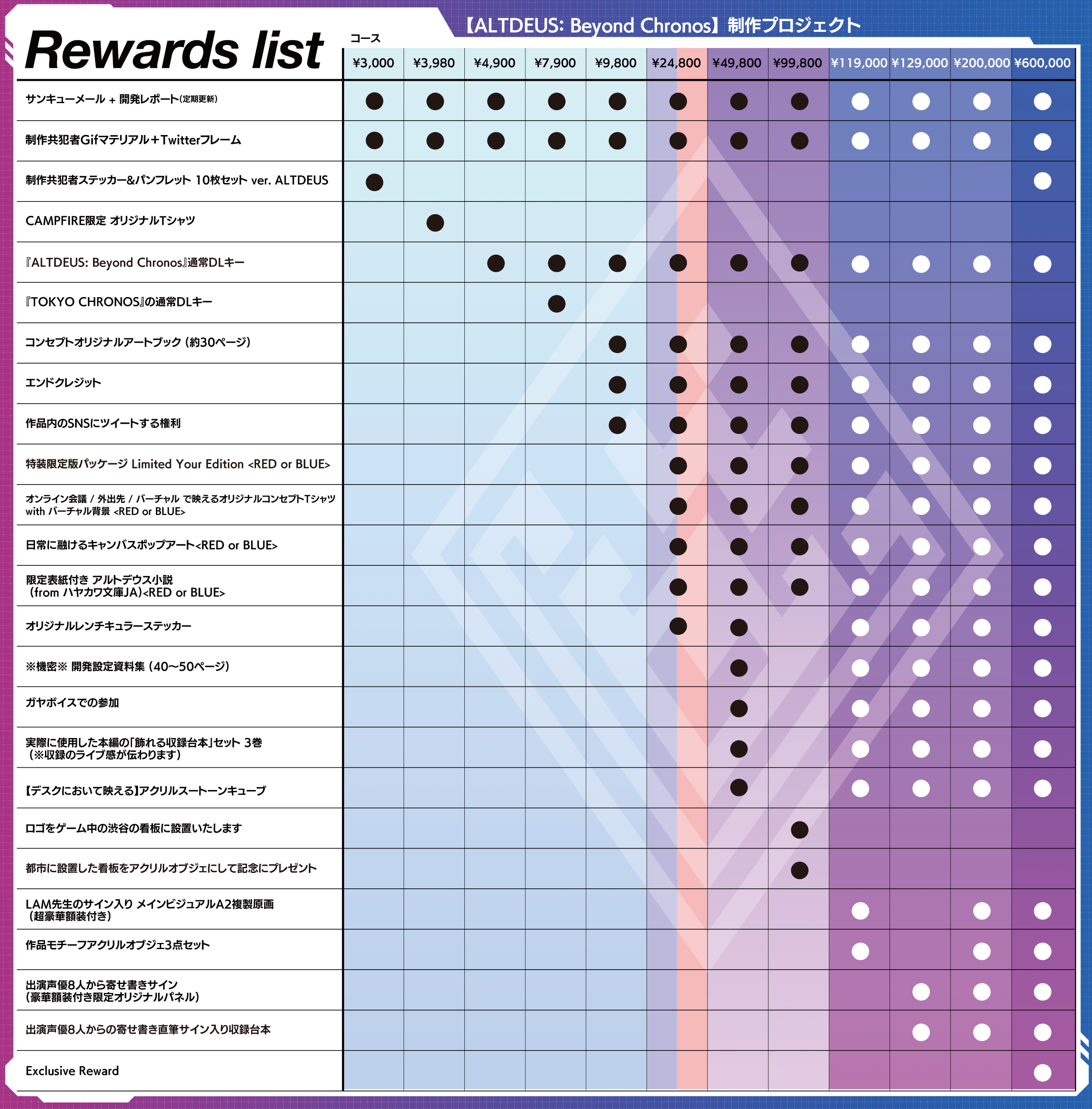 コンセプトは「アルトデウスBCを100倍楽しむためのもの」【1,500円コース】【12,800円コース】です。CAMPFIRE限定になりますので、経緯も含めぜひ見ていただけると嬉しいです!