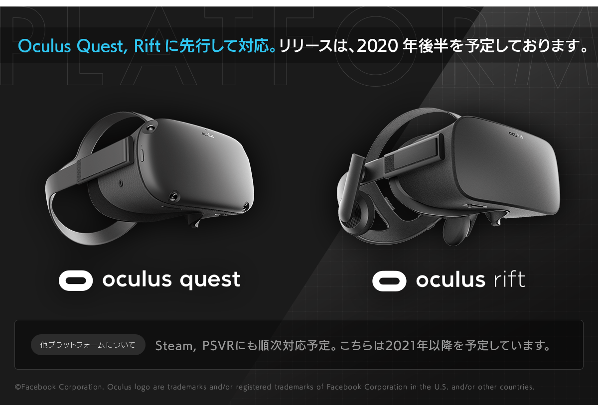 Oculus Quest, Riftに先行して対応。リリースは、2020年後半を予定しております。