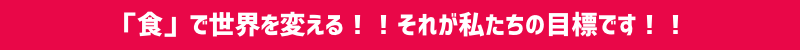 私たちは、「食」で世界を変える!!と言う大きな目標を持って、一人でも多くの方の食生活の改善、健康増進のお手伝いをして行きたいと考えています。