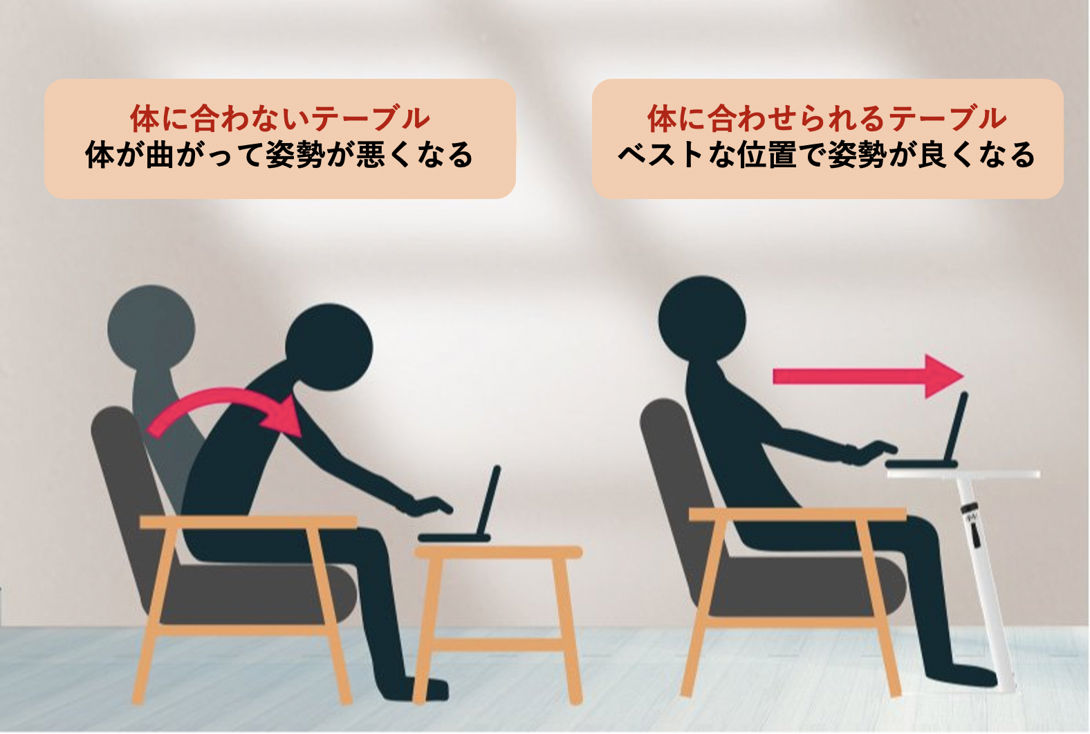 ベストな位置にテーブルを合わせられるので