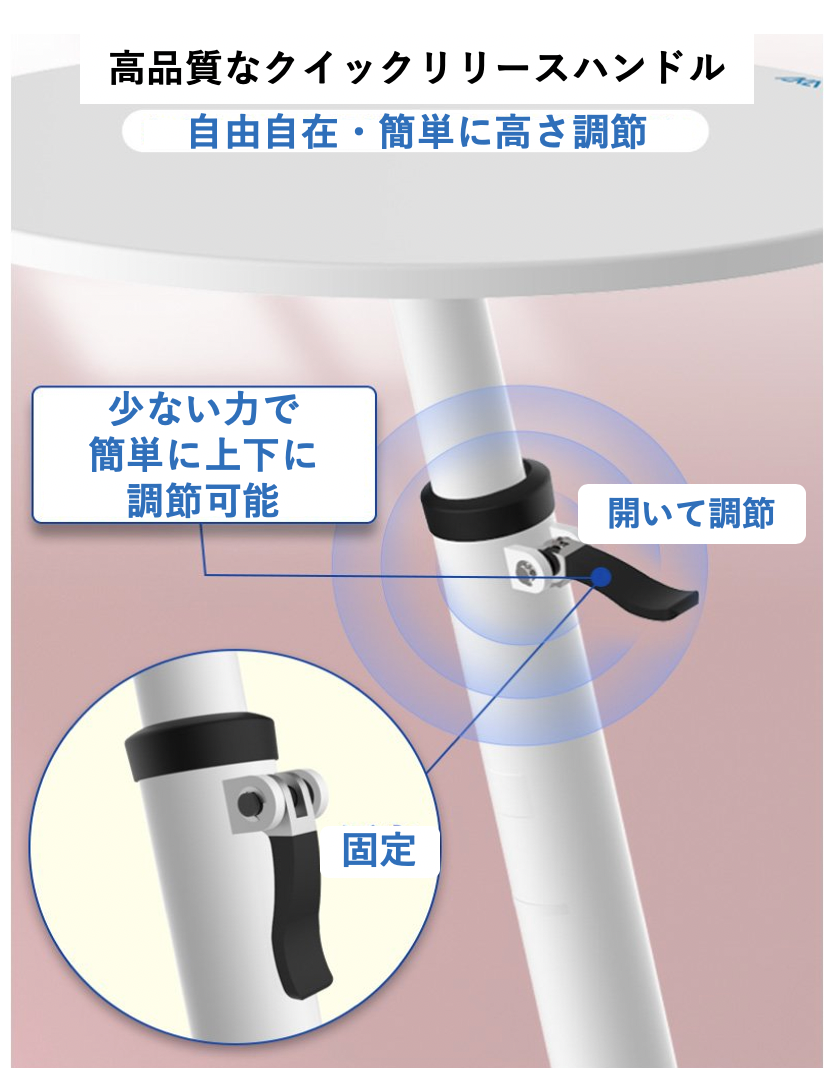 高さ調節は、クイックリリースハンドルで簡単操作。