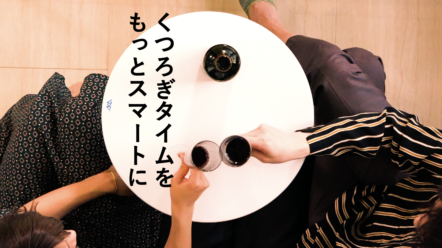 このテーブルがあれば、ワインを注いだりおつまみを取ったりするのも