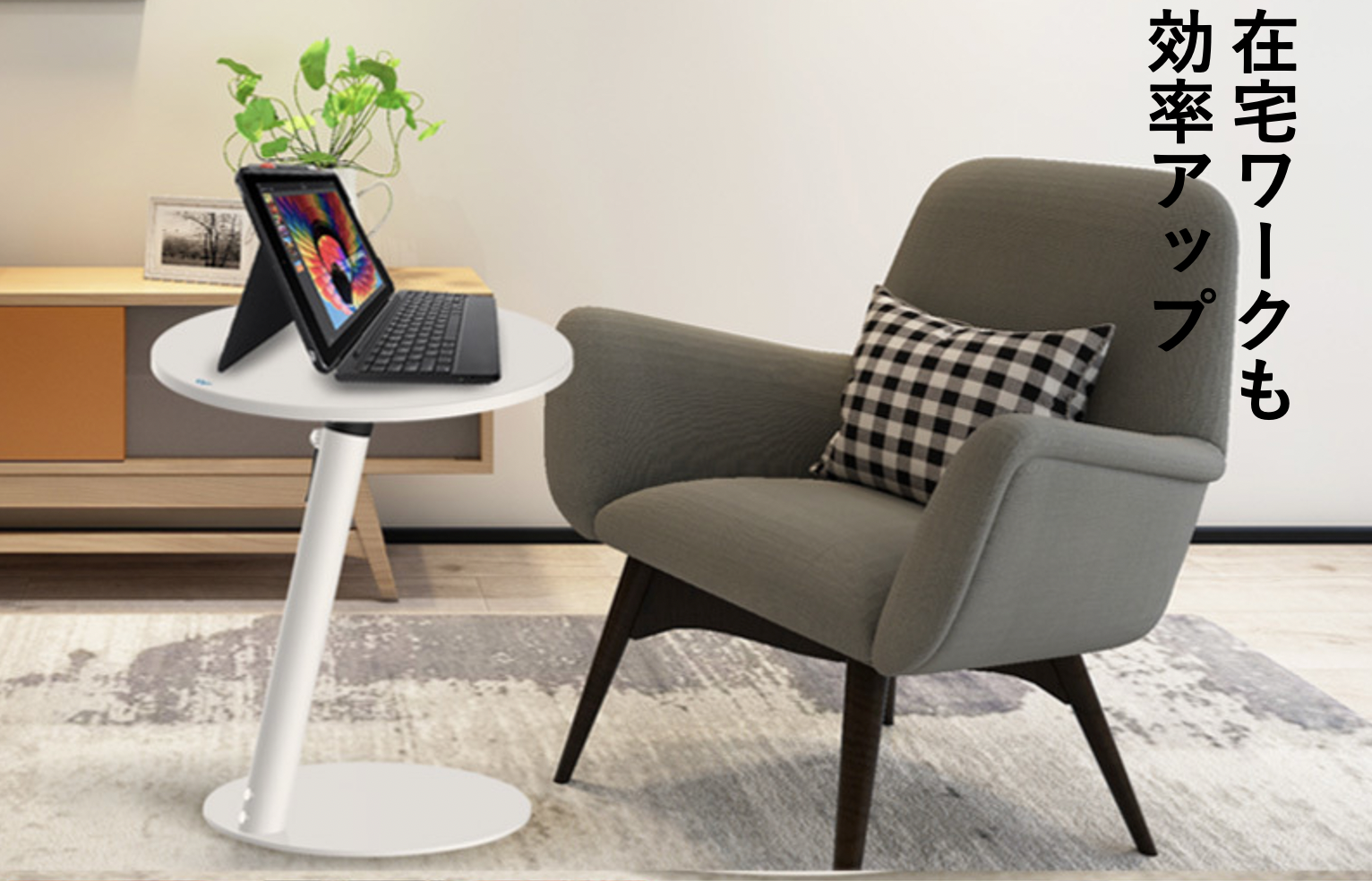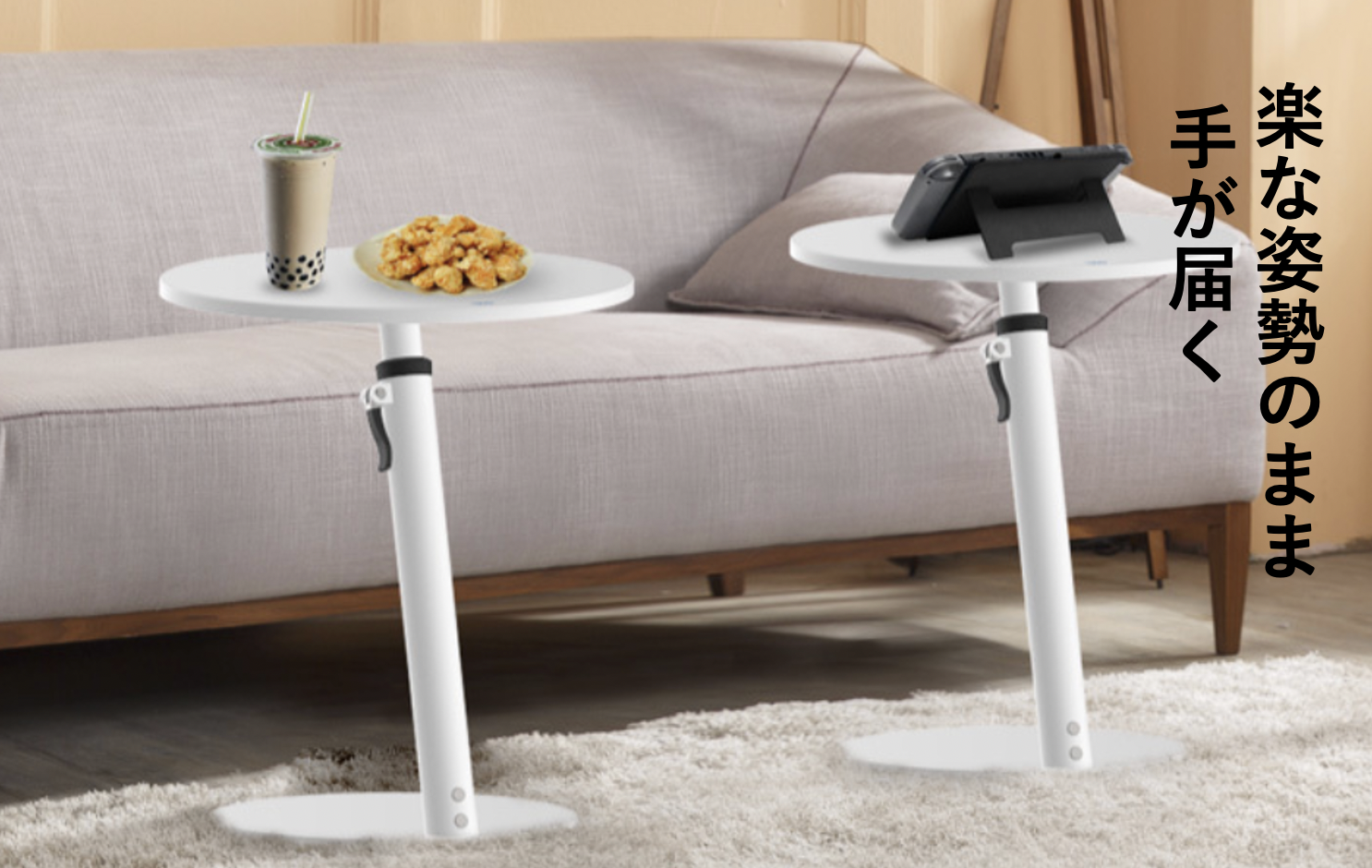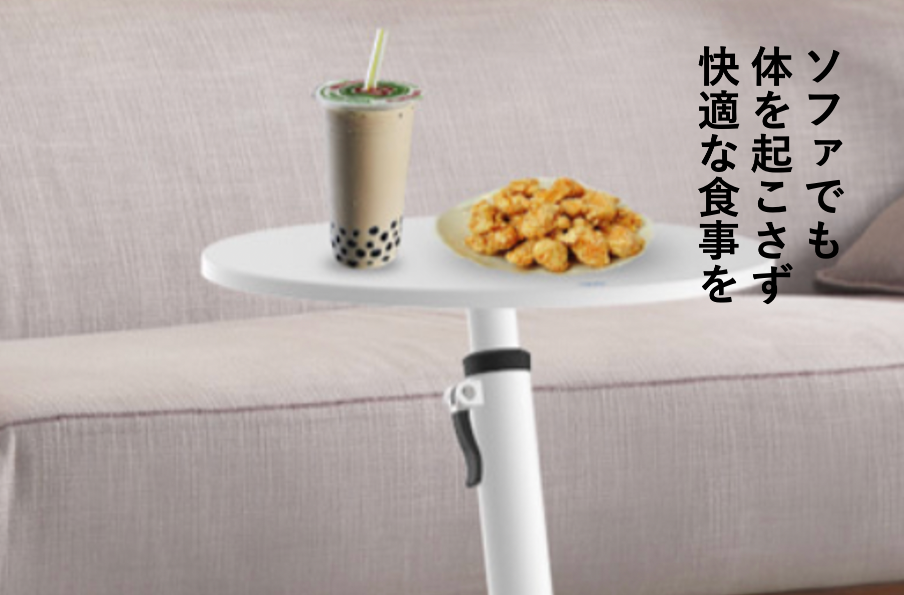このテーブルがあれば、くつろいだまま手が届くので