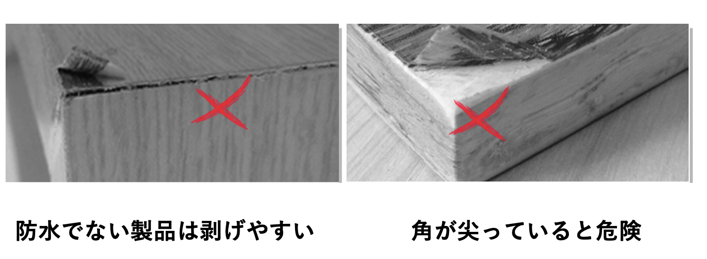 テーブルの角には面取り加工が施されているので安心してご使用いただけます。