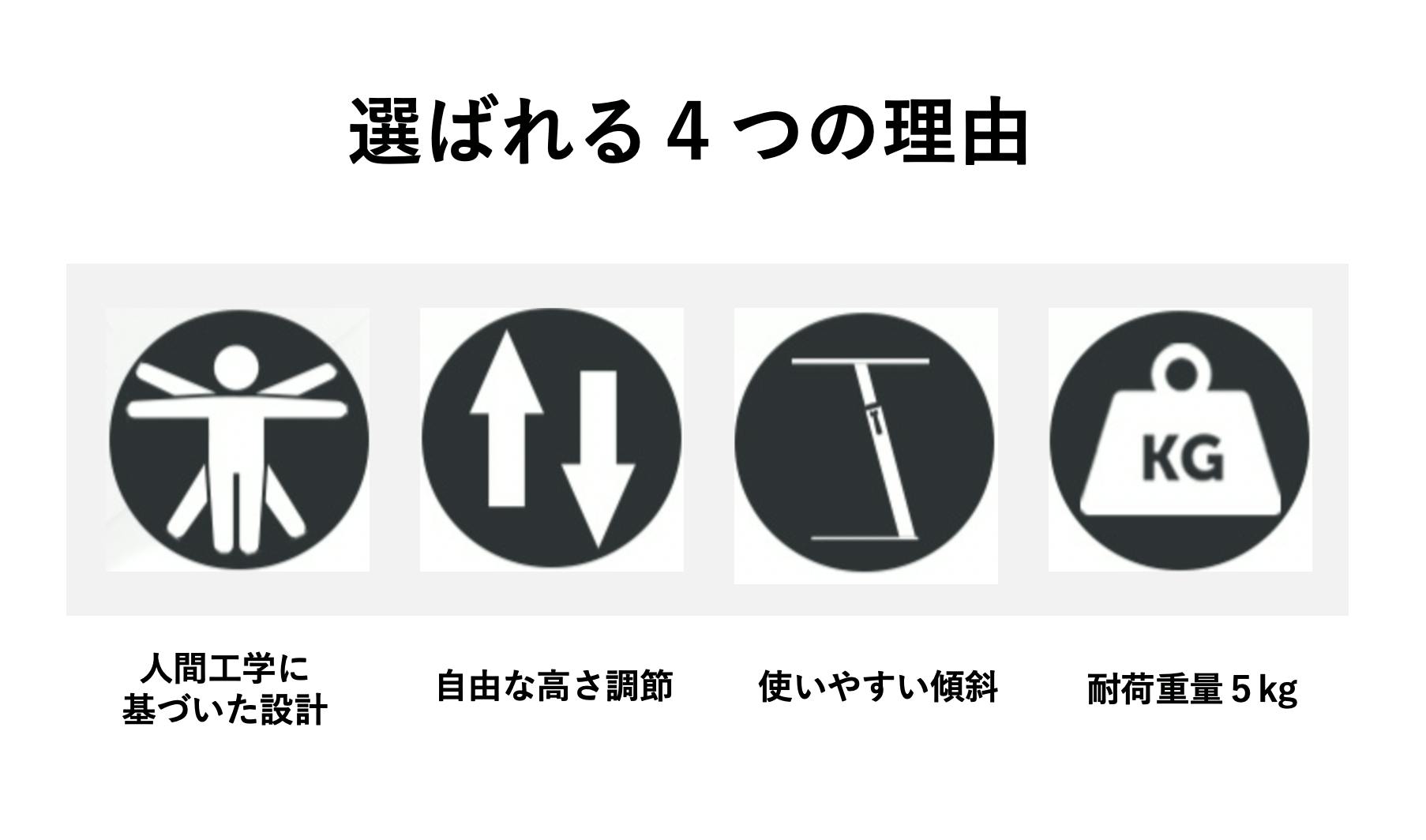 人間工学に基づいた最適な傾斜で高い安定感があり、