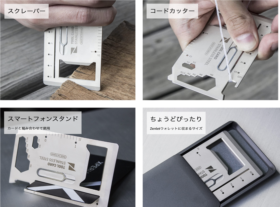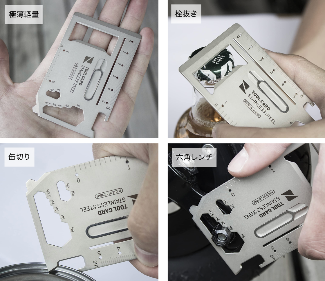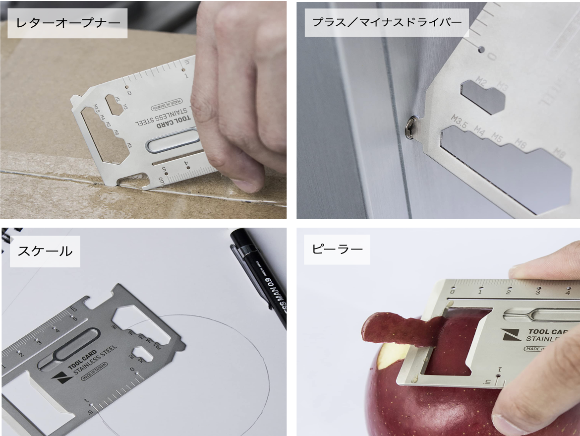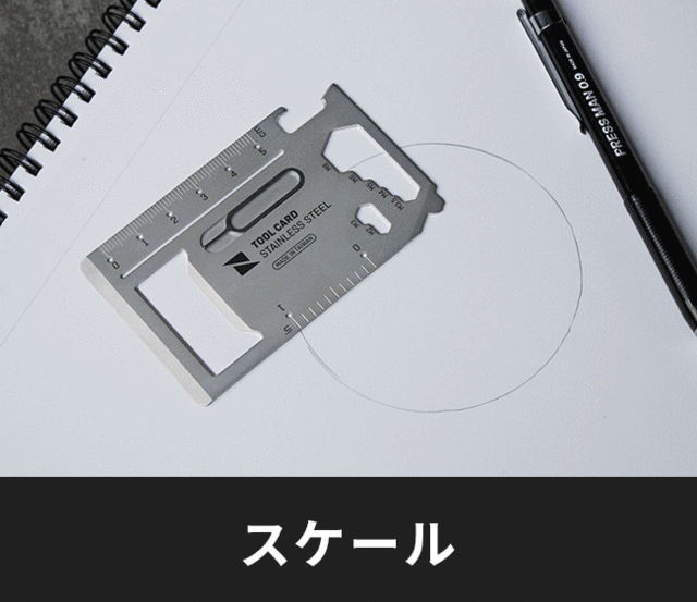 ドライバー、六角レンチ、栓抜き、定規など10種以上の機能を備えています。