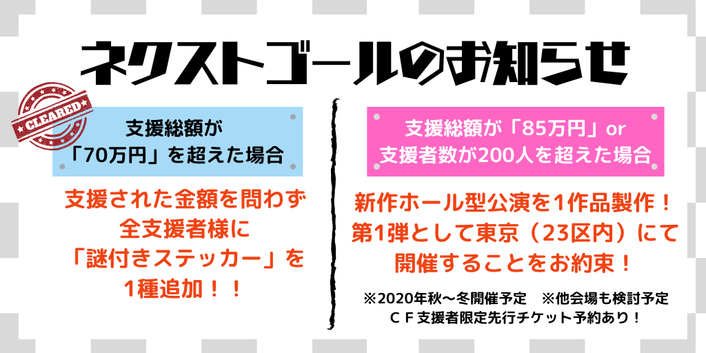 【支援総額が「85万円」もしくは支援人数が「200人」を超えた場合】