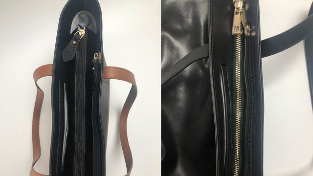 バッグ裏面にもジッパー付きポケットを設置。これらのアウターポケットはバッグを肩にかけたまま中身を取り出せるので、通勤通学での定期の出し入れなどに便利です。
