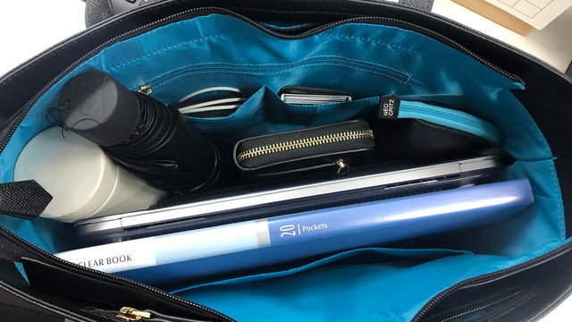 サイズ感としてはA4ファイルや15.6インチPCまで入るメインスペースを設けていますので、ビジネス用途で困ることはないはずです。その他にも充電ケーブルをはじめとした小物類など、よく使うものの整理をしやすいようにポケット類も完備しています。