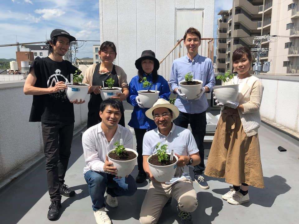「コワーキングスペースSHARES」の屋上でホップの苗植えを行います。
