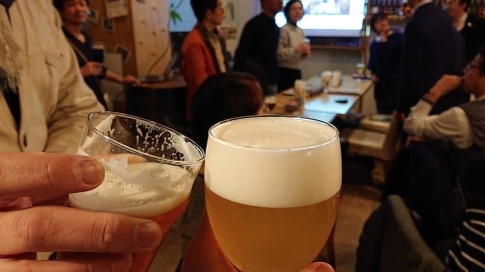 自らホップを育て、乾杯したビール。とても美味しかったです!