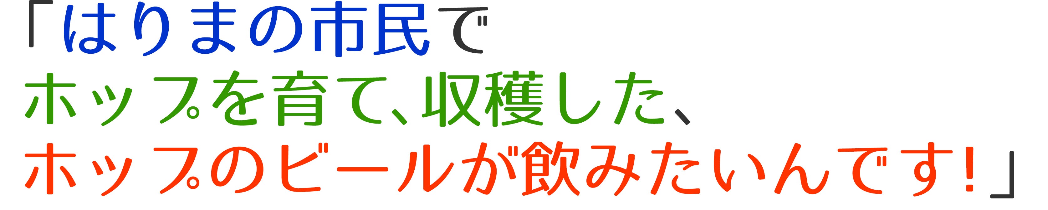 私達は市民の手でビールの原料になるホップを育て、みどりとふれあい、その自らの手で育てたホップをビールにしようとしております。