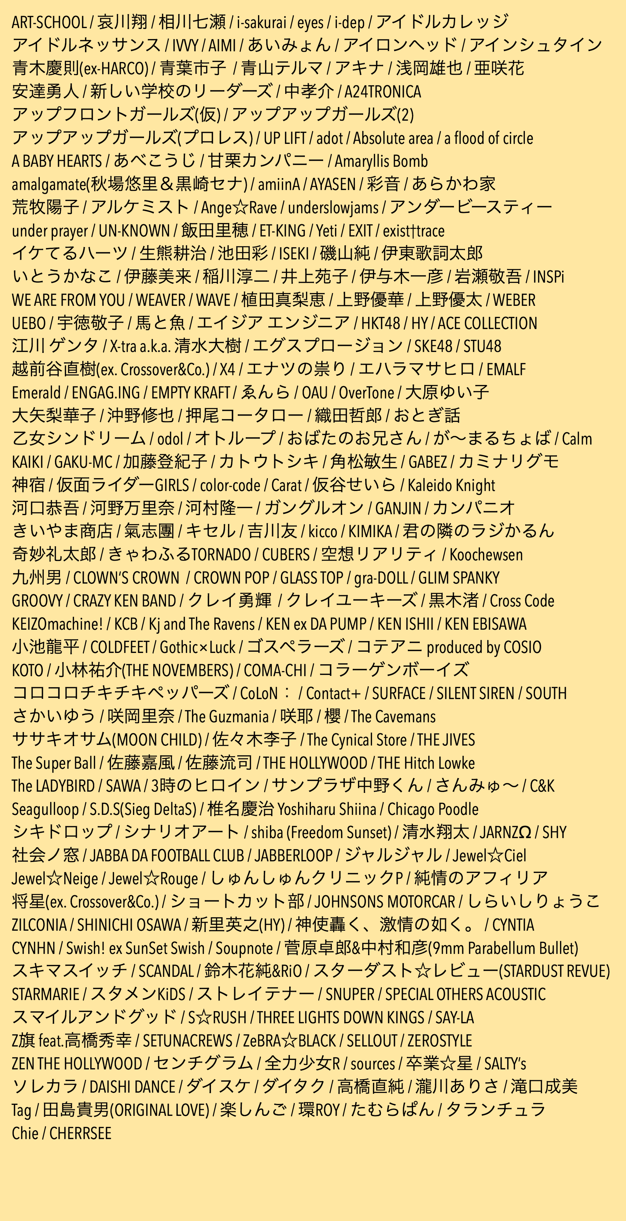 Q:Tシャツに掲載のアーティストは増減する可能性ありますか?