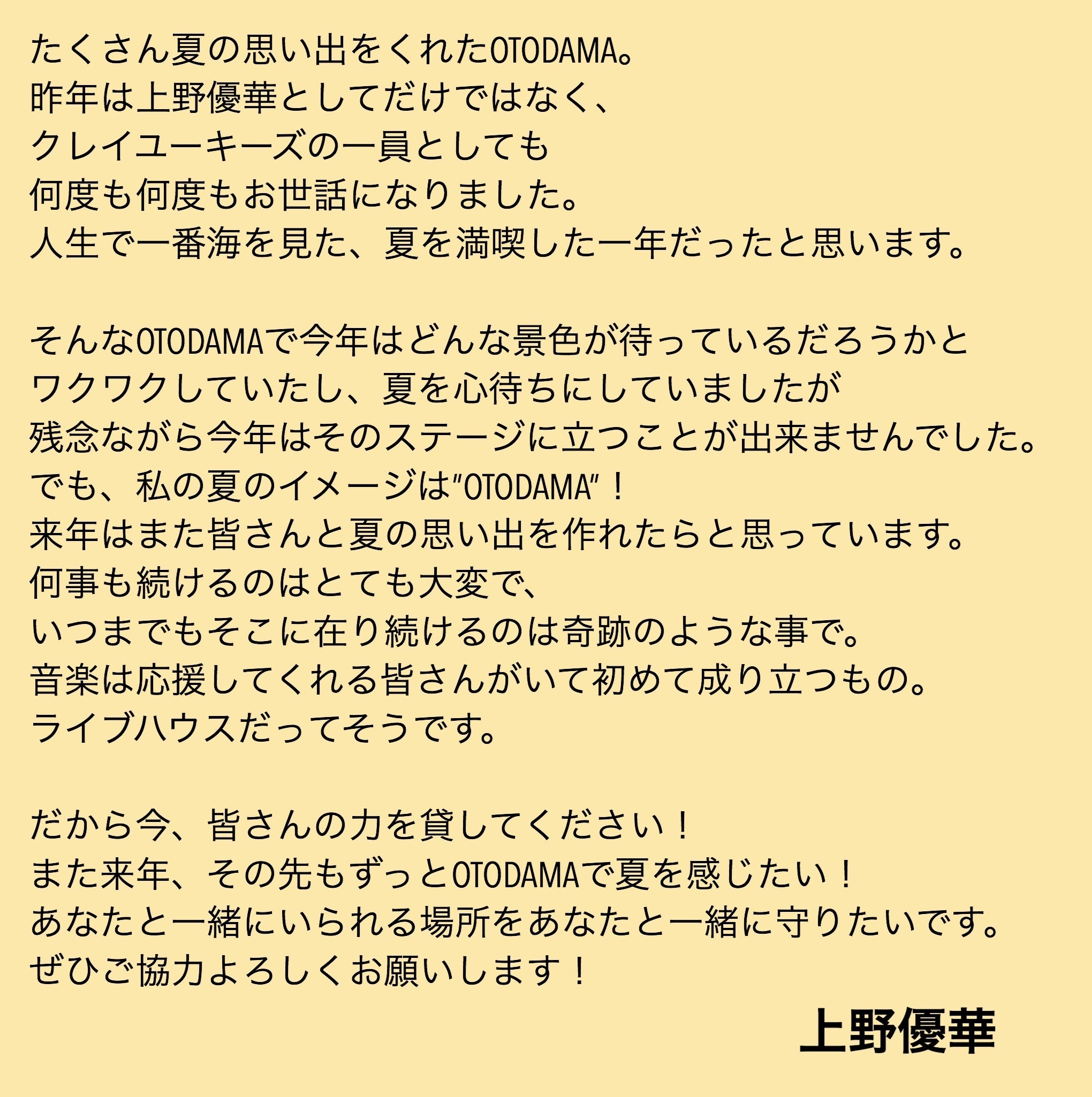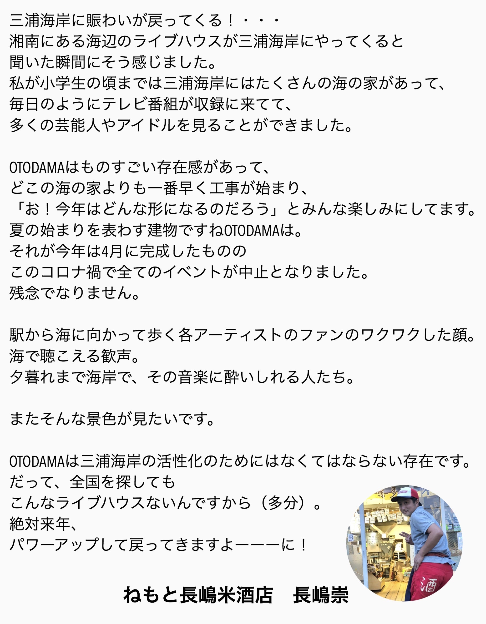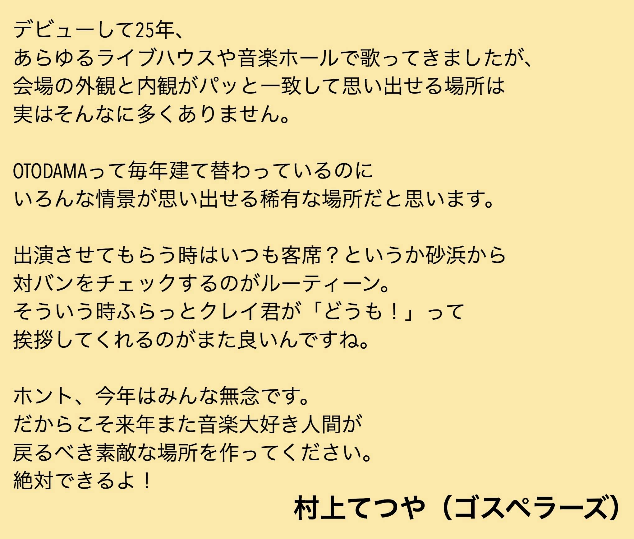 そんな中、昨年の台風後と同じく今年のOTODAMA中止についても心配や激励の言葉を多数いただきました。本当に嬉しい限りで感謝しかありません。