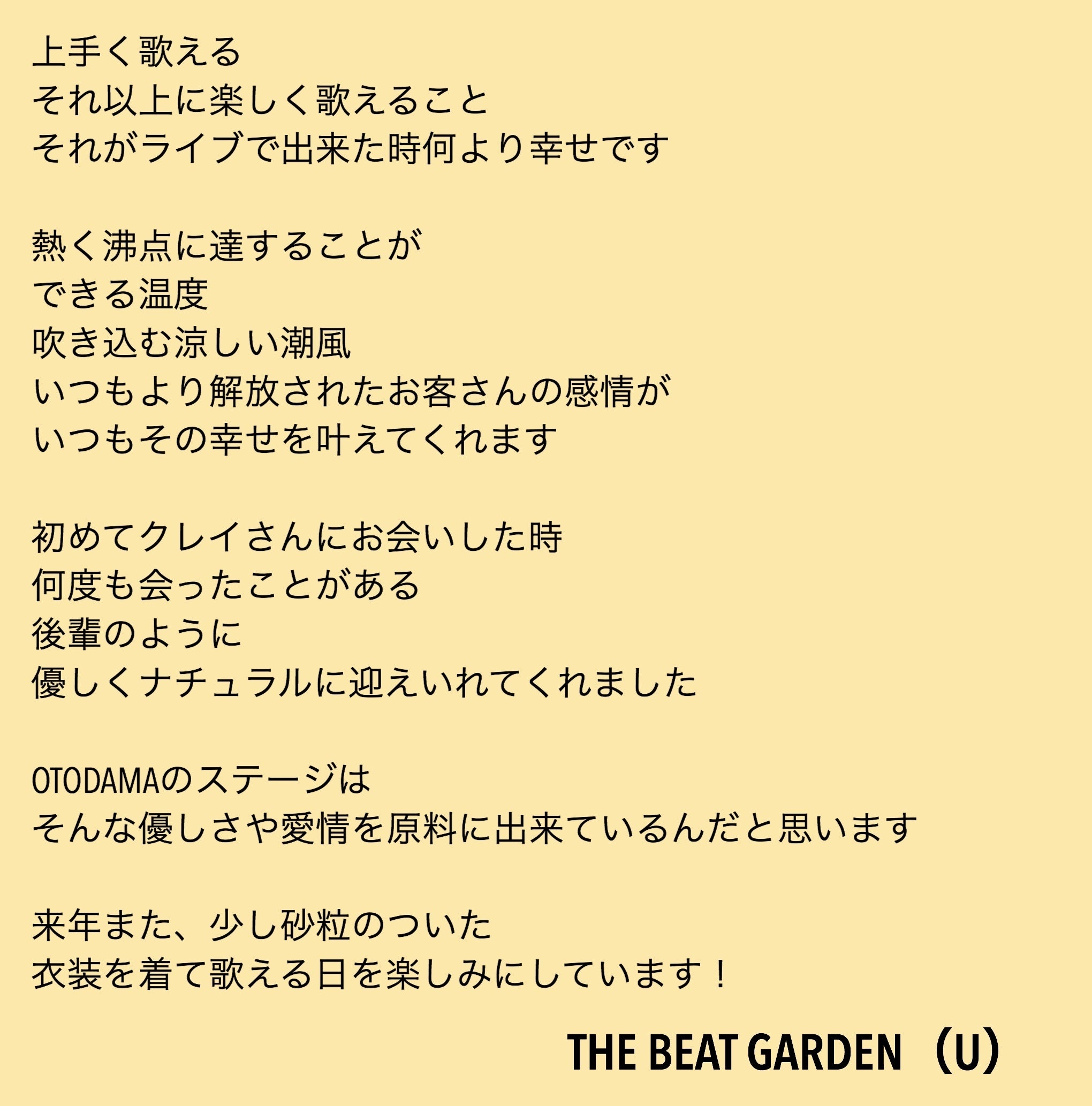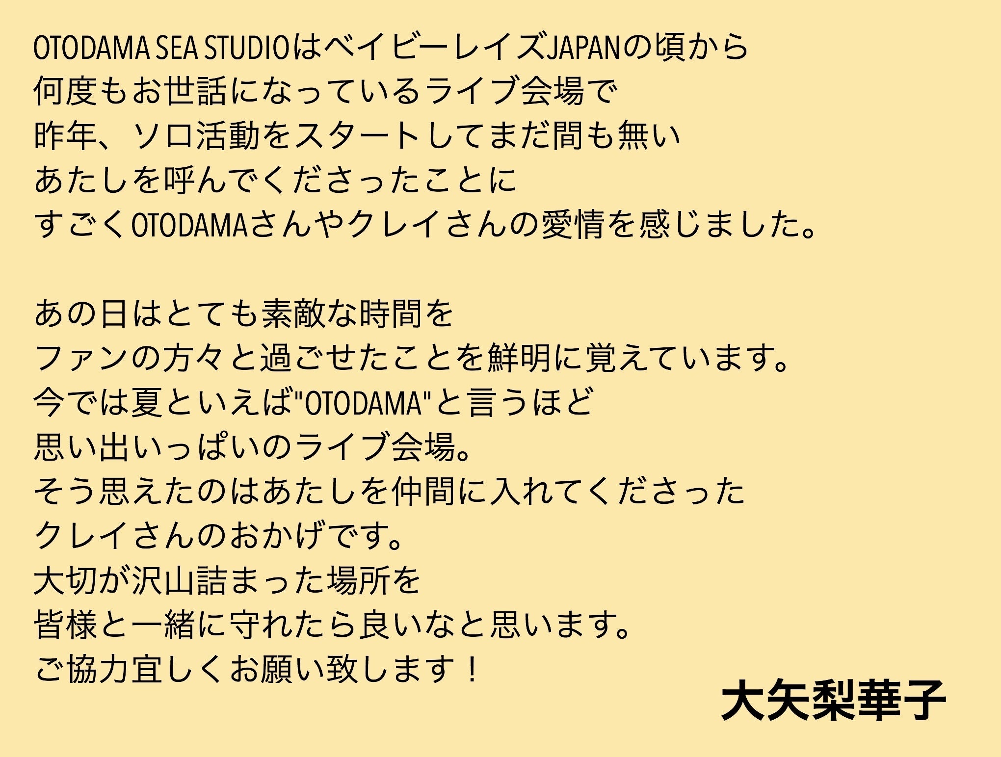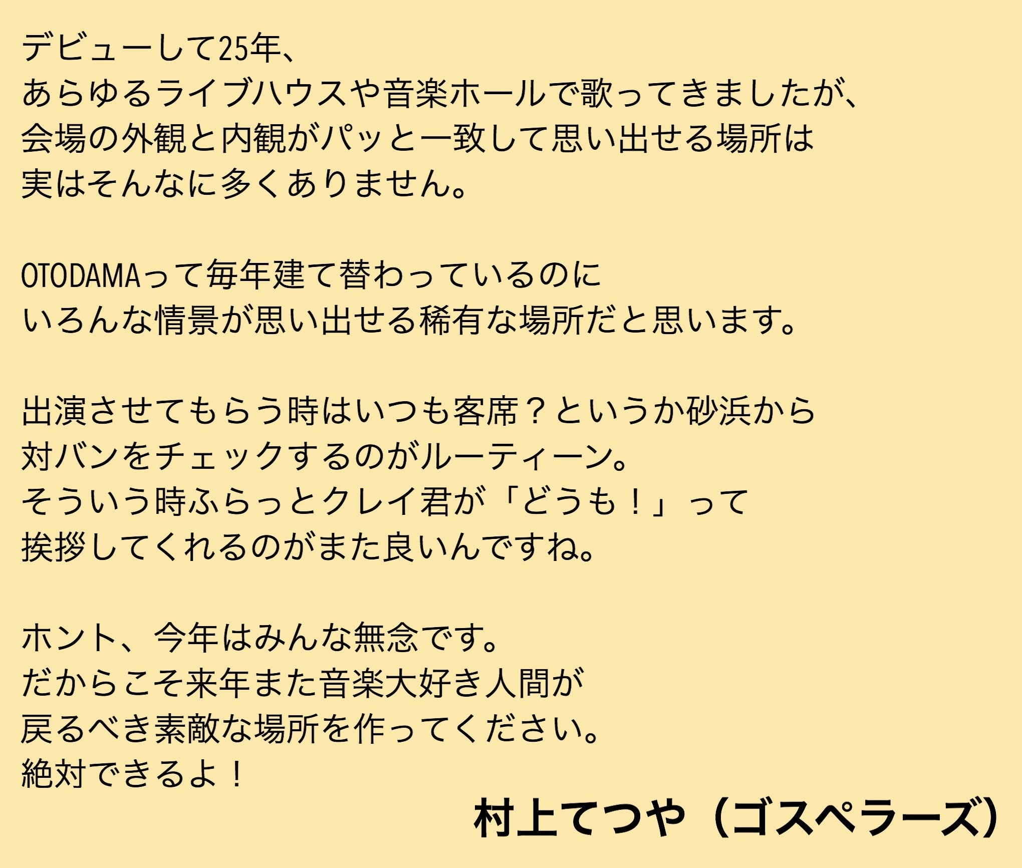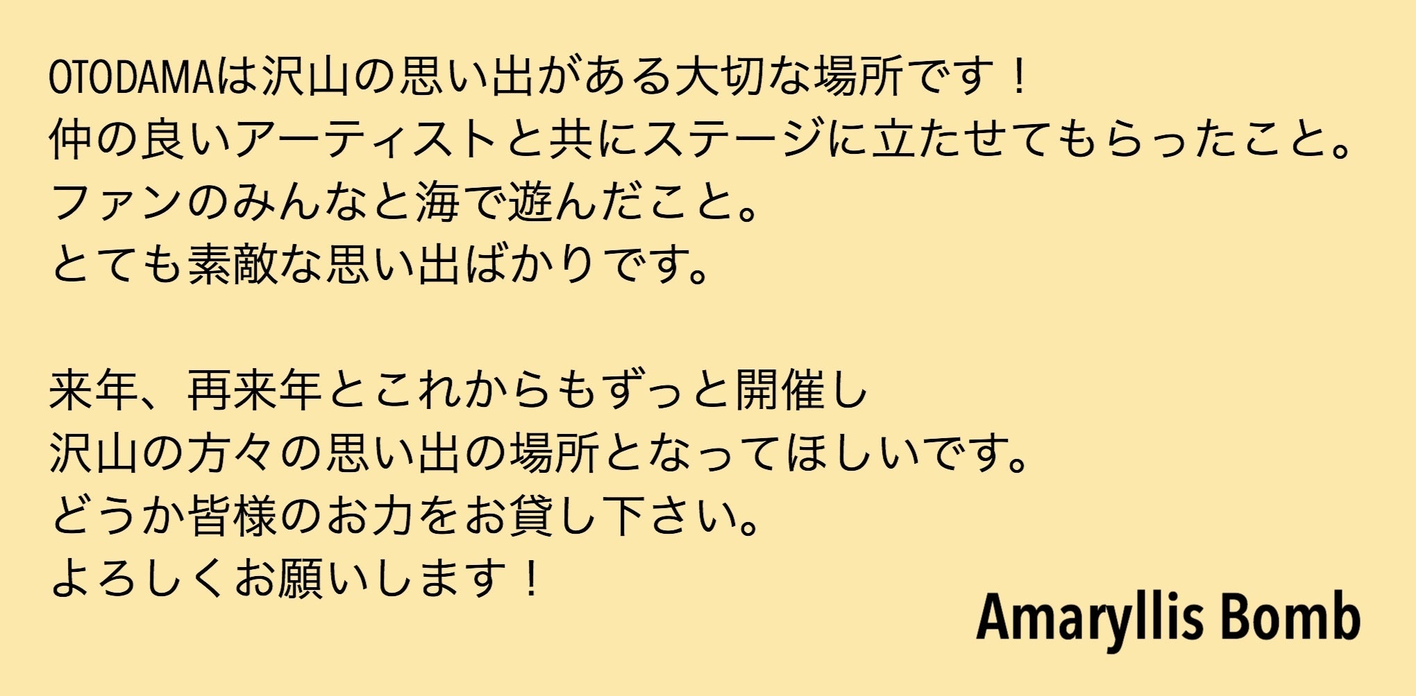 そんな中、昨年の台風後と同じく今年のOTODAMA中止についても心配や激励の言葉を多数いただきました。本当に嬉しい限りで感謝しかありません。
