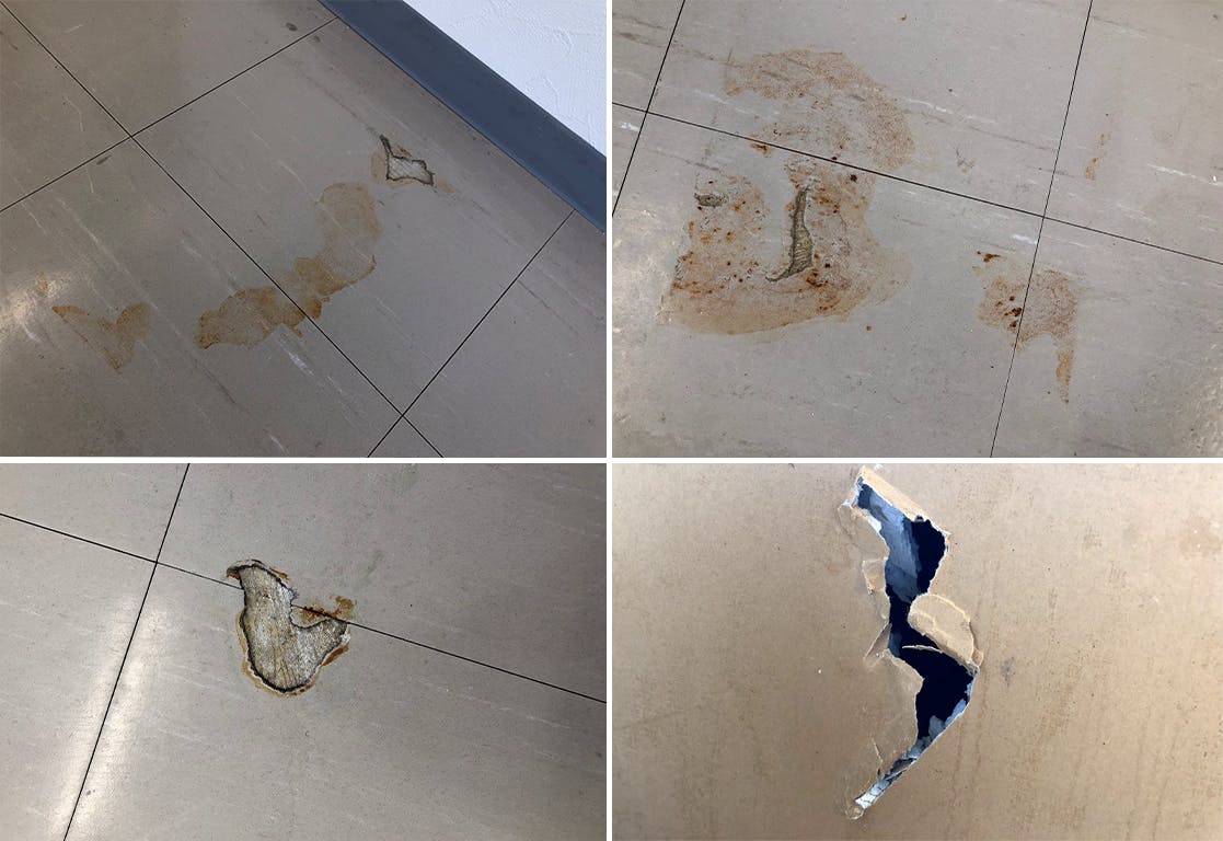 ・傷んだ事務所床の修繕と倉庫スペース床のリフォーム(セメントを木のタイルに) 約30万円