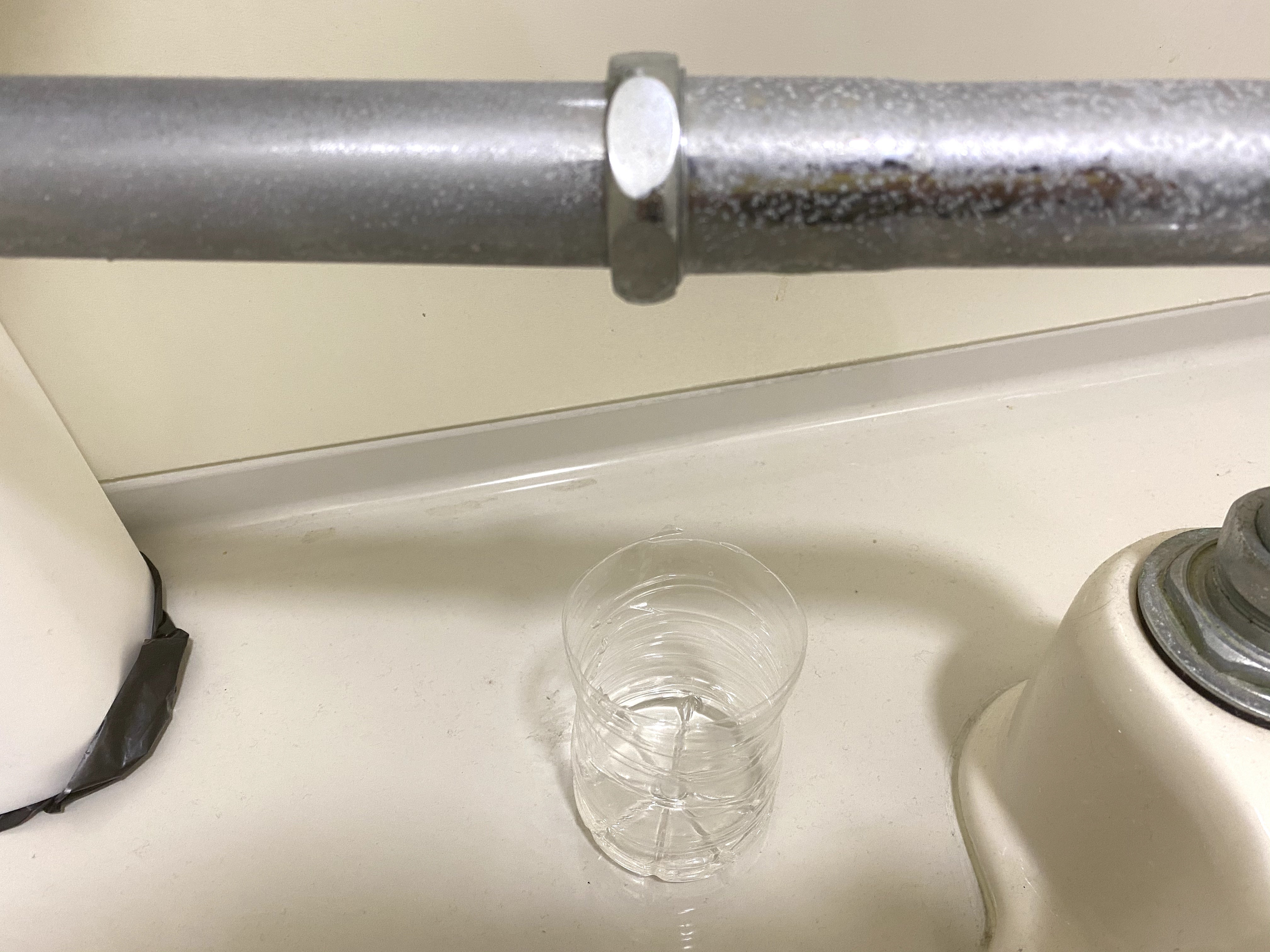 そして現在、お店の中のお手洗いは暗く、寒々しい和式のトイレになっています。スタッフがかなり頑張って掃除をして、可能な限り清潔な状態に保っていますが、水漏れするので常に水受け用のペットボトルをおいてあったり、
