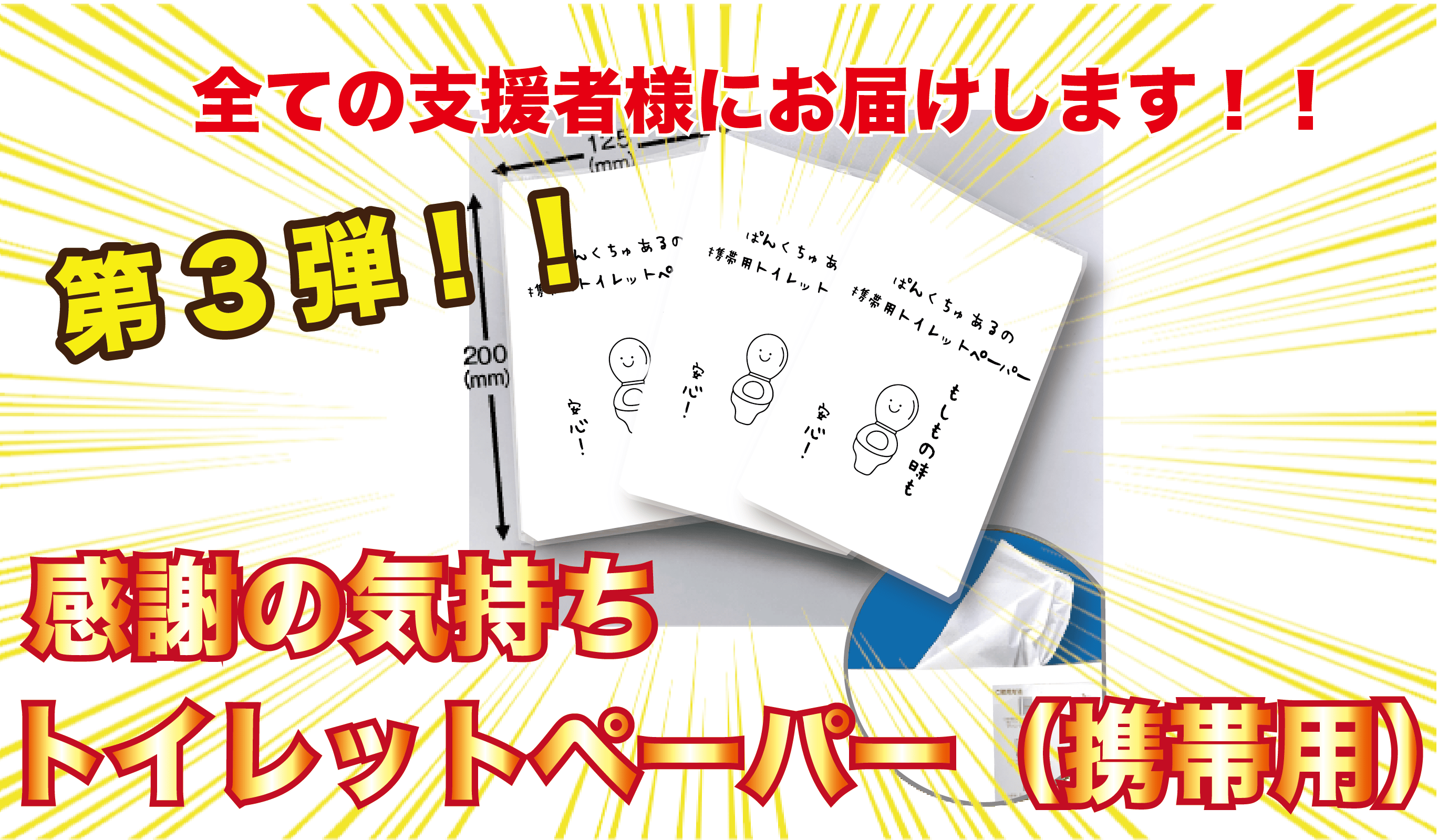 そして皆様には感謝の気持ちトイレットペーパー(携帯用)をお届けさせていただきます。