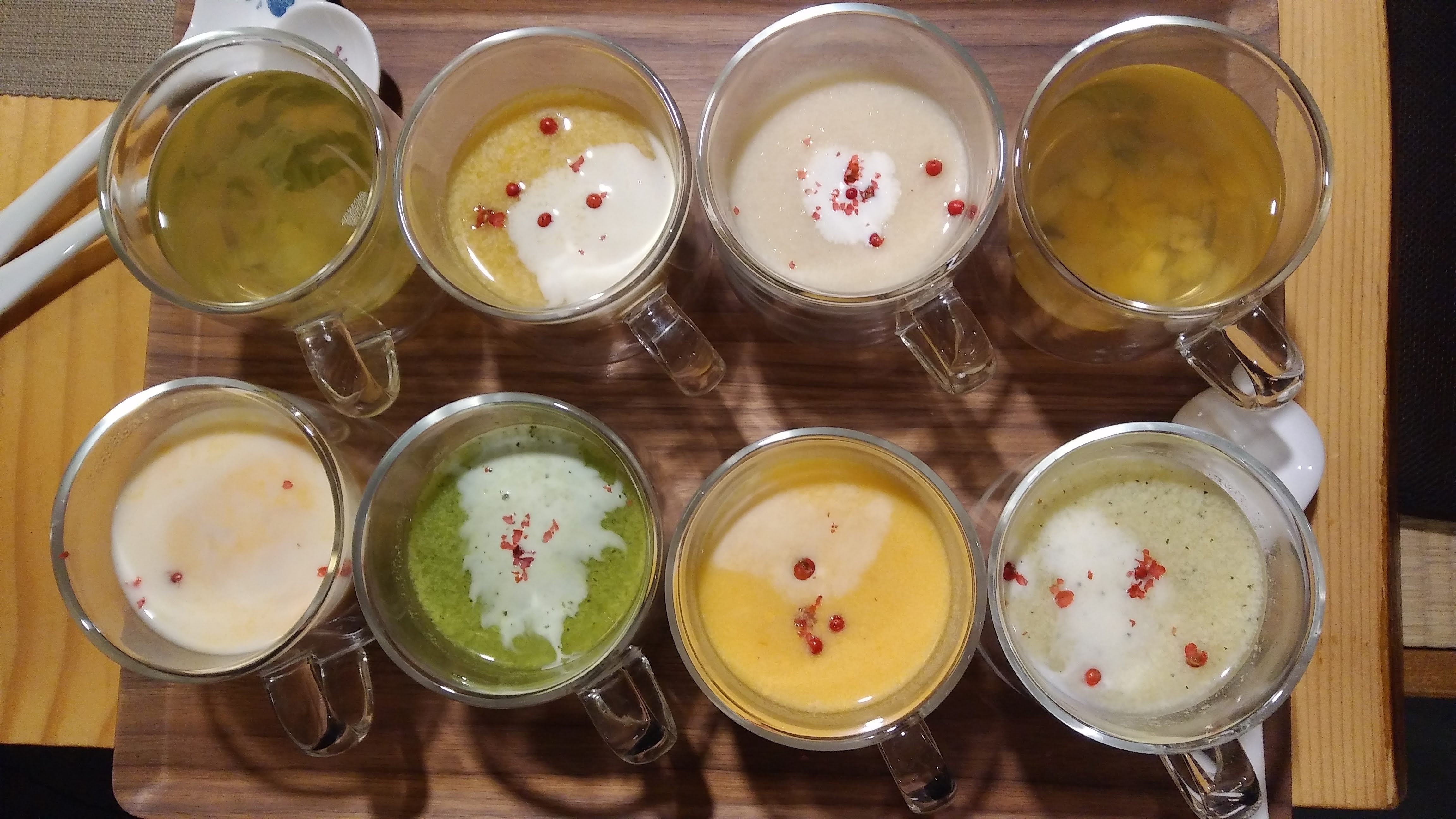 【12月のスープ】パプリカ、バターナッツパンプキン、冬瓜とベーコン、カリフラワー、生姜ポタージュ