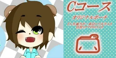 『人生適当が一番』という文字入り&彷徨うクマのロゴ入りのオリジナルポーチを送らせていただきます。