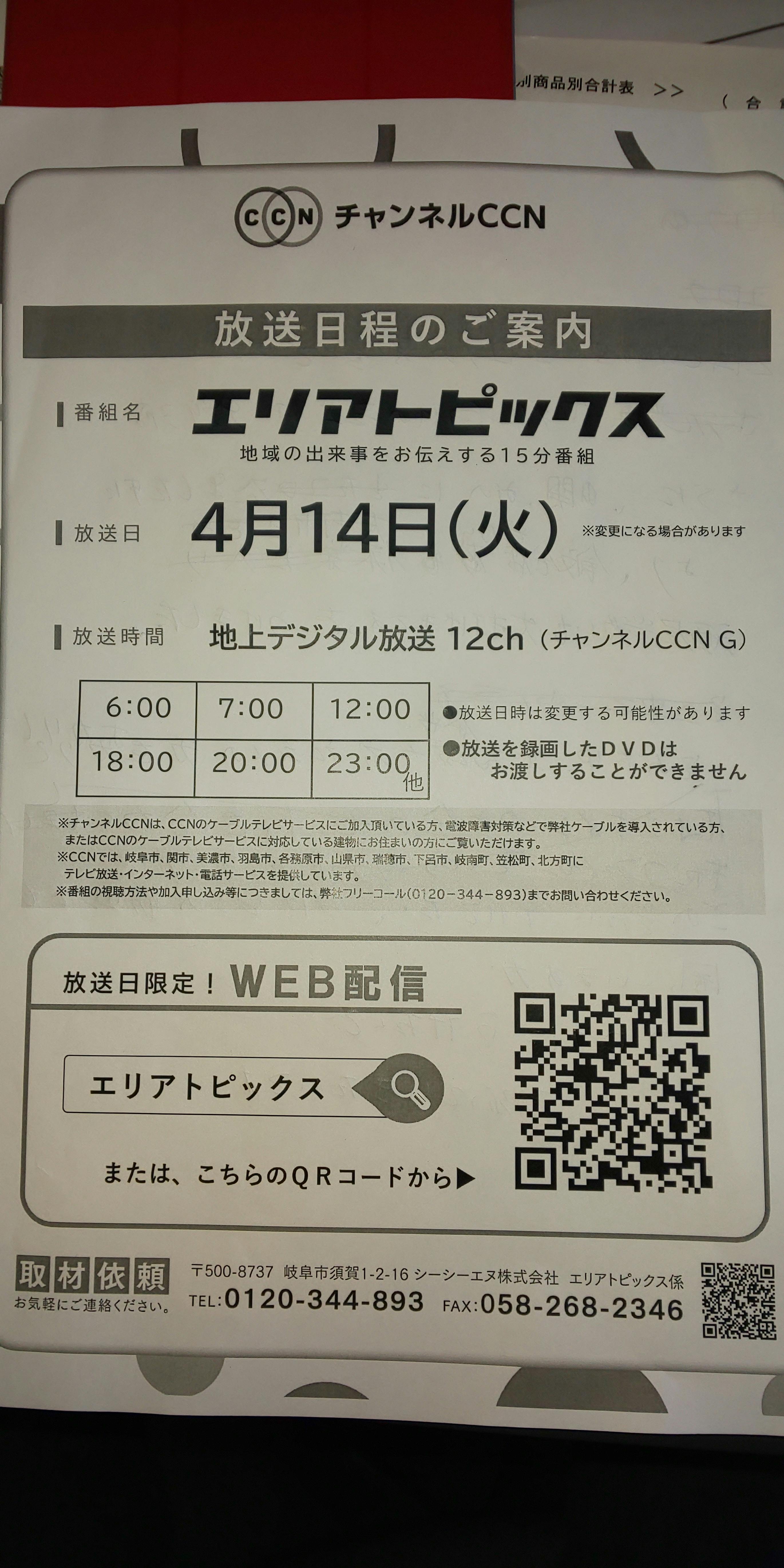 2020/04/14 10:204月14日 ケーブルテレビで 放送されます。12:00 18:00 20:00 23:00岐阜近郊だけの放送ですが しっかり伝えていただきました。 もっと見る