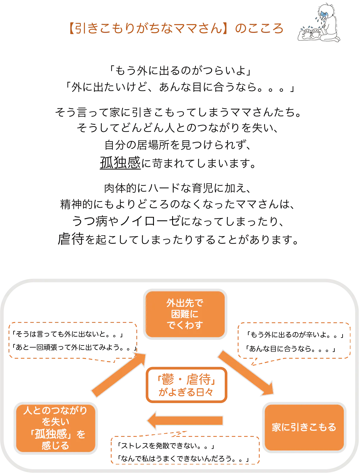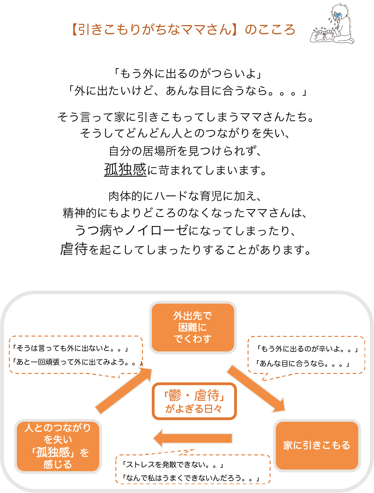 孤立しがちな育児を、もっとオープンでもっと安心なものにしていきます。
