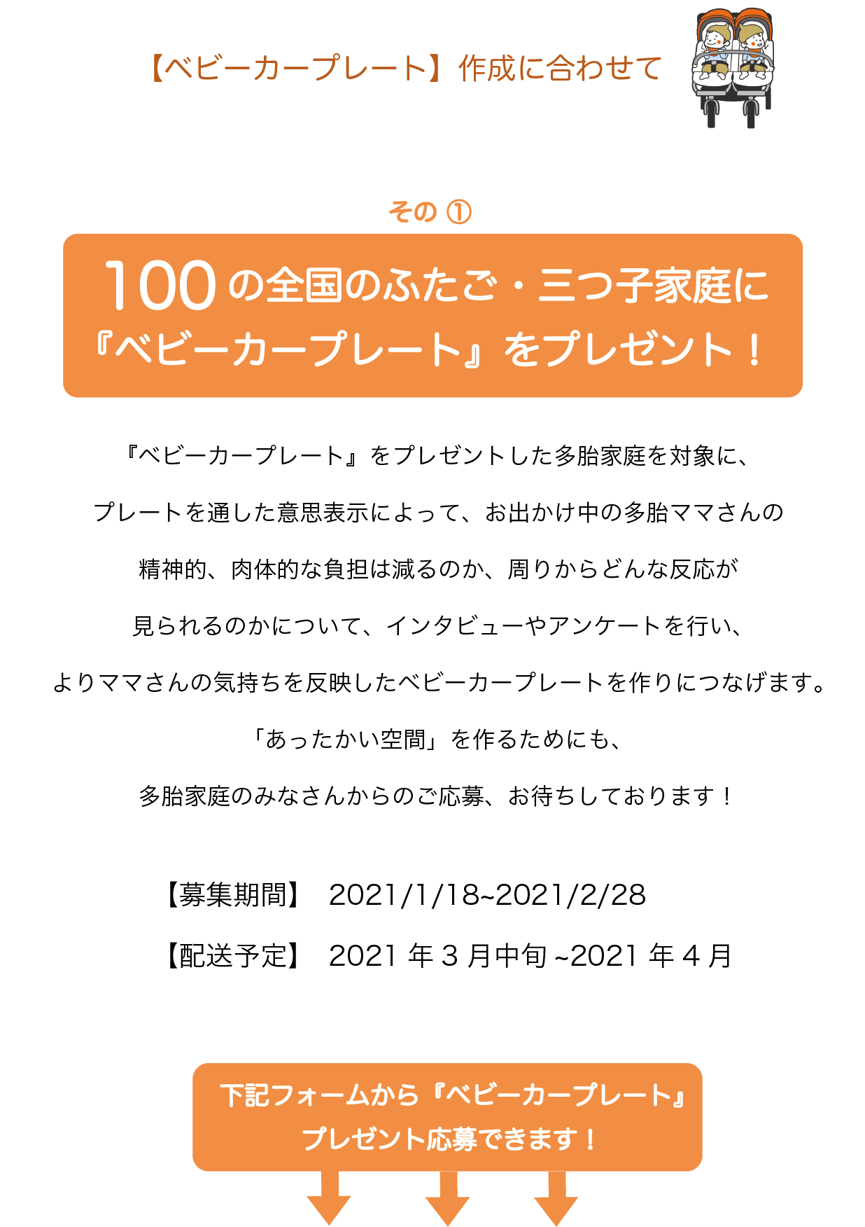 計100の多胎家庭にベビーカープレートをお届けしました!