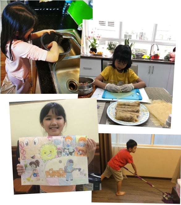 世界的に新型コロナウイルスの影響が出ている今、第3の習慣「最優先事項を優先する」を大事にしたいと、他国の人たちに向けて「健康でありますように」と応援メッセージを発信している子どもたちがいます。第7の習慣の「刃を研ぐ」の健康を大事にしようと「手洗い」「マスクの着用」「適切な距離を保つ」ことを呼びかける絵を描いて、SNSで共有している子どもがいます。休学中に家の手伝いをしている姿、勉強している様子、古い物をリサイクルして作った小物を紹介、家族へのインタビュー動画をアップするなど、子どもたちは自分たちの得意なことを活かし、主体的にリーダーシップを発揮しています。