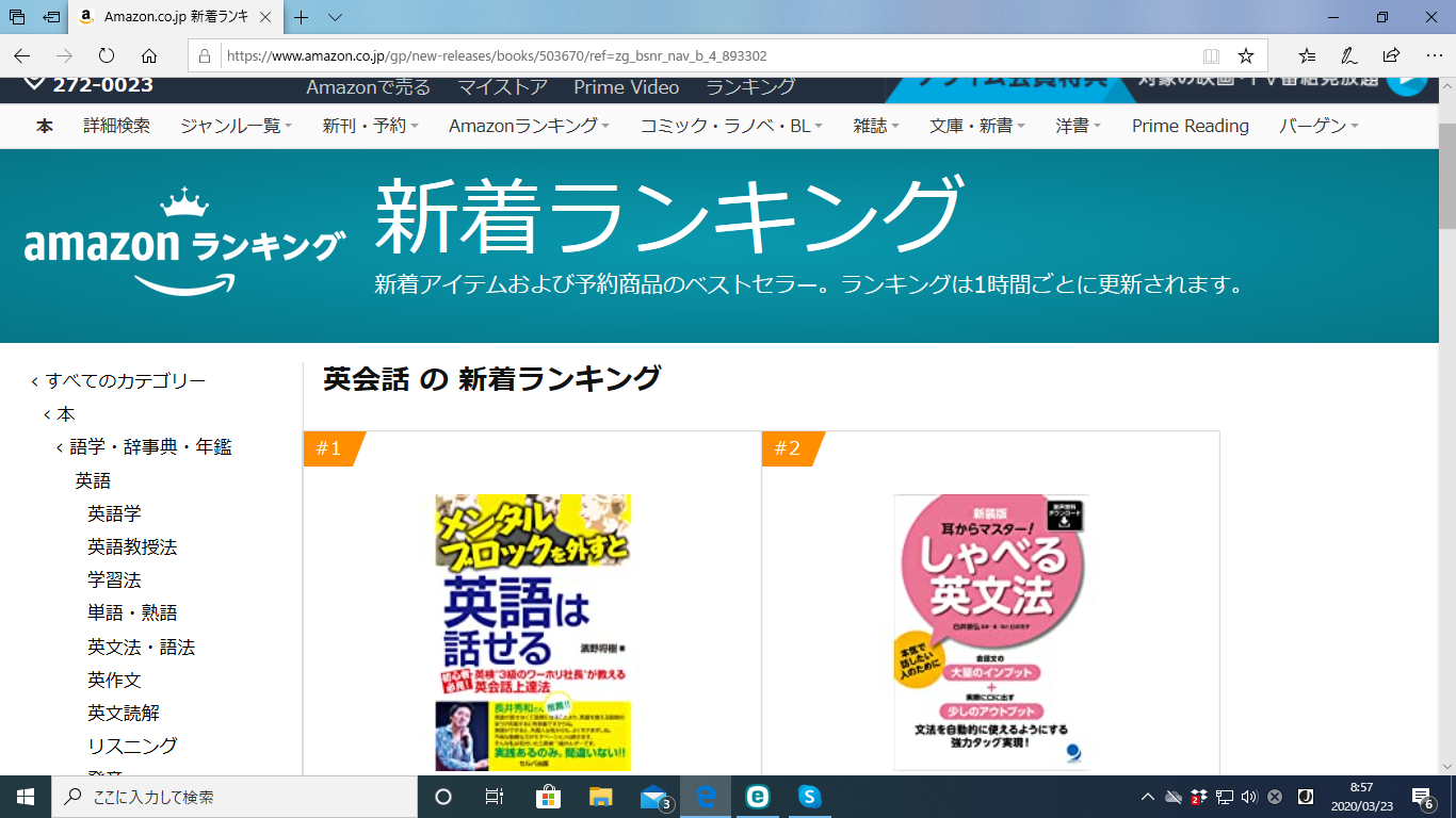 お陰様でアマゾンランキング英会話初登場第1位を獲得しました。
