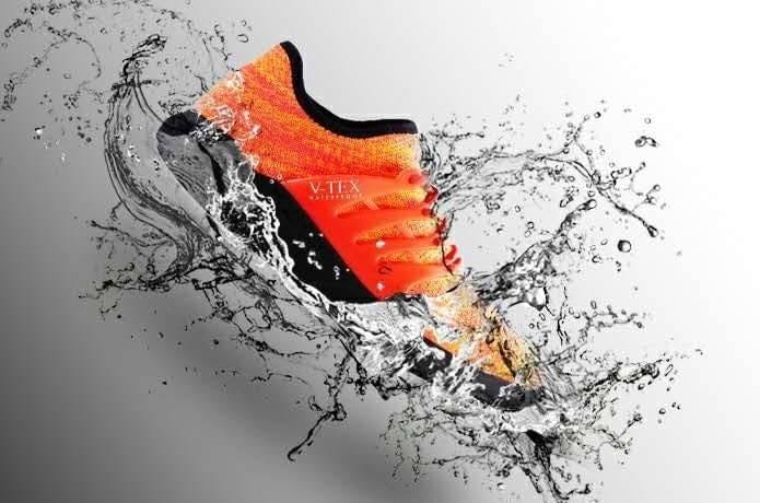 V-TEXの防水耐久性に関して、ニットの表面が鋭利な物体によってメンブレンの内側まで破損しない限り、靴の寿命まで防水性は持続します。