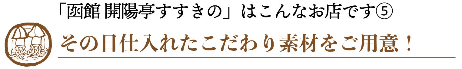 とことん味と鮮度にこだわり、厳選した産地・市場から仕入れたその日の旨い旬食材は、美味しいままをその日にご提供。北海道の四季の味をご堪能頂けます!