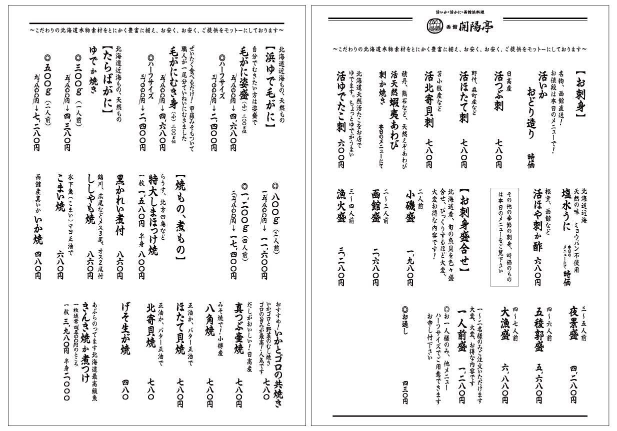 はじめまして、「函館 開陽亭 すすきの」と申します。