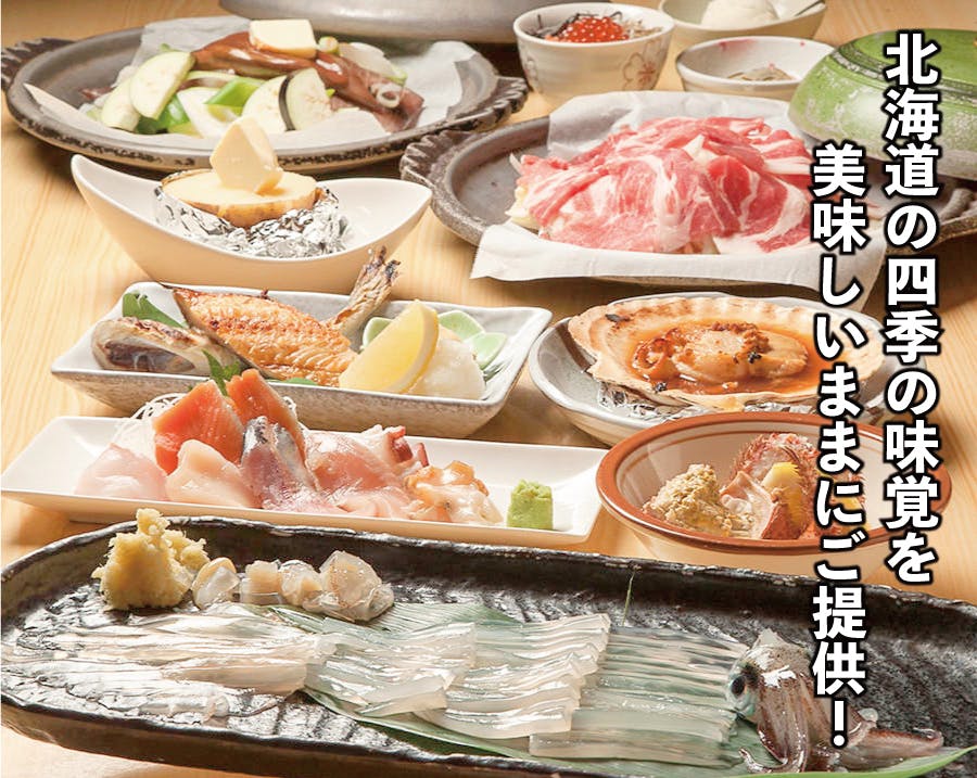 近海地物の天然海鮮から季節の野菜に至るまで、北海道料理をたっぷりのボリュームでお得にご用意しております!