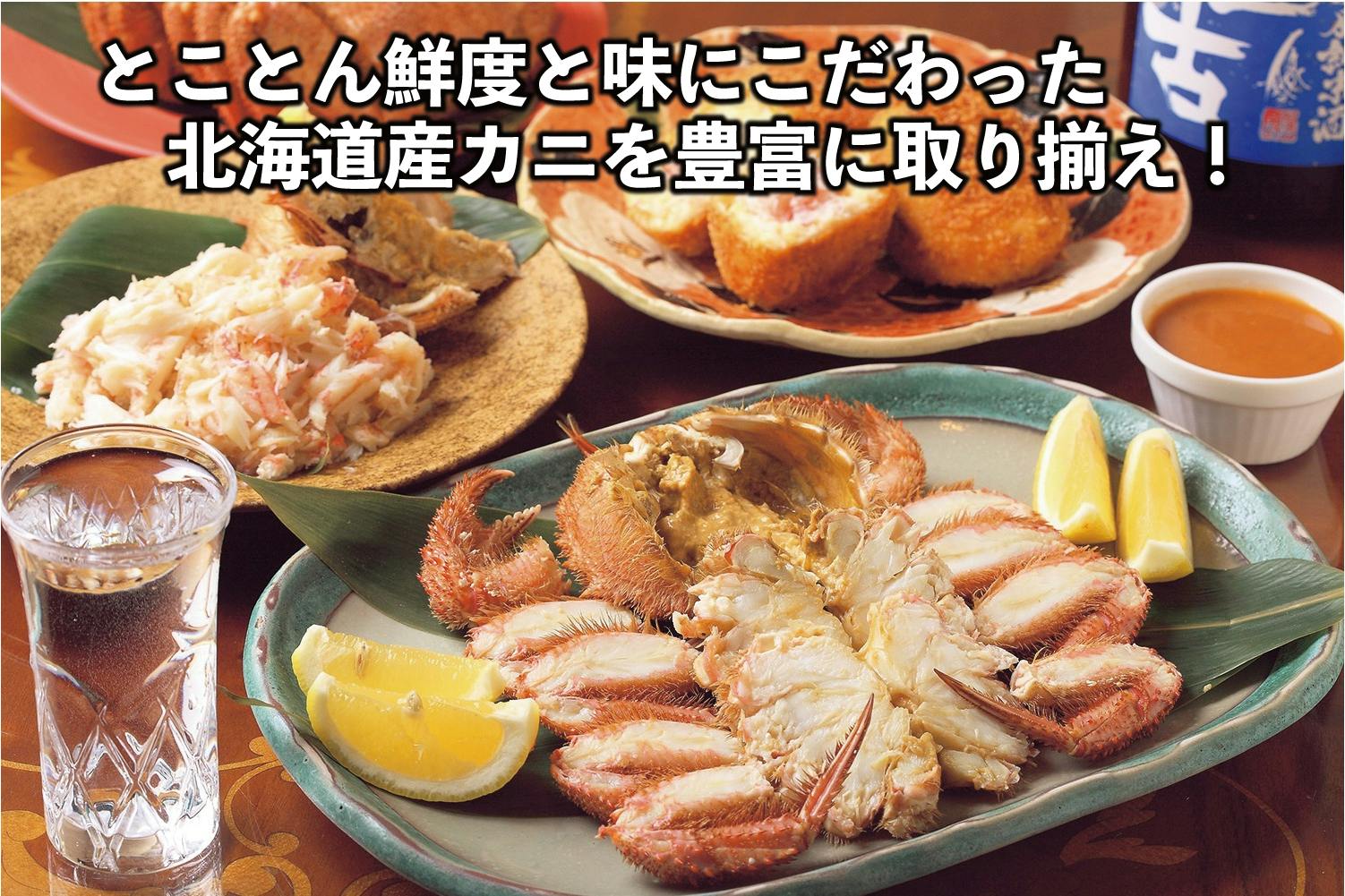 毛ガニ・タラバガニ・ズワイガニ・花咲ガニなど、北海道ならではのカニを豊富に取り揃えております。近年は不漁続きで浜値が上がっている「毛ガニ」などは独自のルートで仕入れることで、カニ専門店に負けないお得な価格でご提供しております!