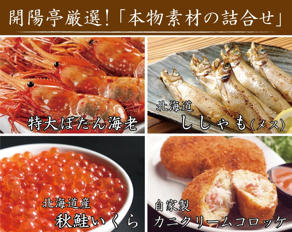 開陽亭が実際にお店でご提供している「北海道本物素材」の詰合せをお送り致します!