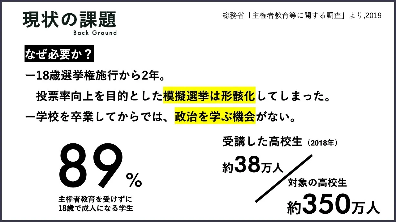 先生や、保護者の皆さんが「政治がわかりづらいから、子どもたちに話しづらい」という声を