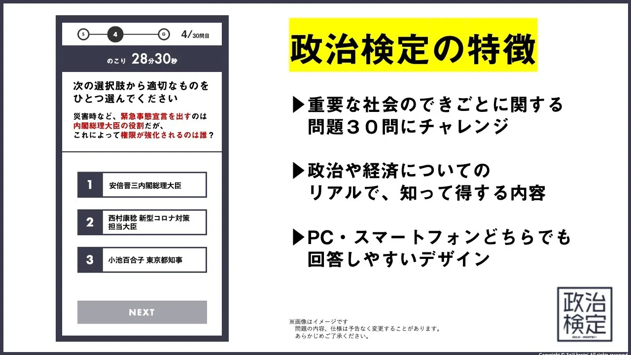 本検定は、一般社団法人 政治理解能力検定協会(設立準備中)をはじめ、