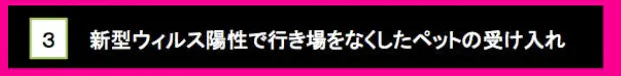 日本動物虐待防止協会では新型ウィルス陽性になった場合に備えて、ペット(家族)の預かり先を準備したり、家族で話し合うように呼びかけています。もしどうしても、どこも見つからないという家族に対しては、預かりの実施を計画しています。