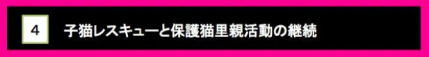 引き続き子猫レスキューと保護猫に里親を見つける活動を続けて行きたいと考えております。
